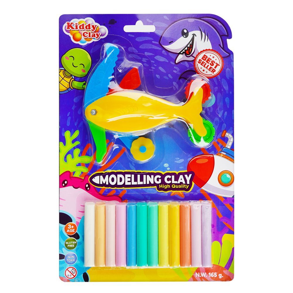 Kiddy Clay 12 Colors Modeling Clay Sticks With Shark, 165g
