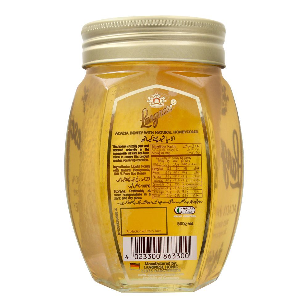 Langnese Acacia Honey With Natrual Honeycomb, 500g