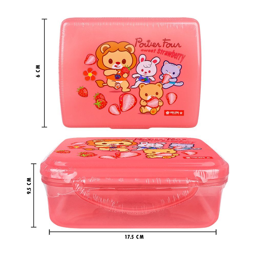 Lion Star Plastic Snap Lunch Box, 6.3in (H) x 4.7in (W) x 2.4in (D), Pink, SB-32