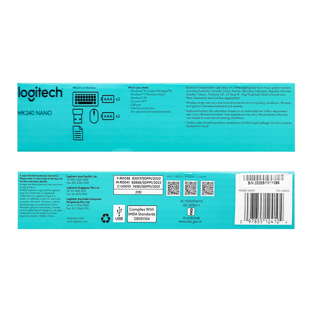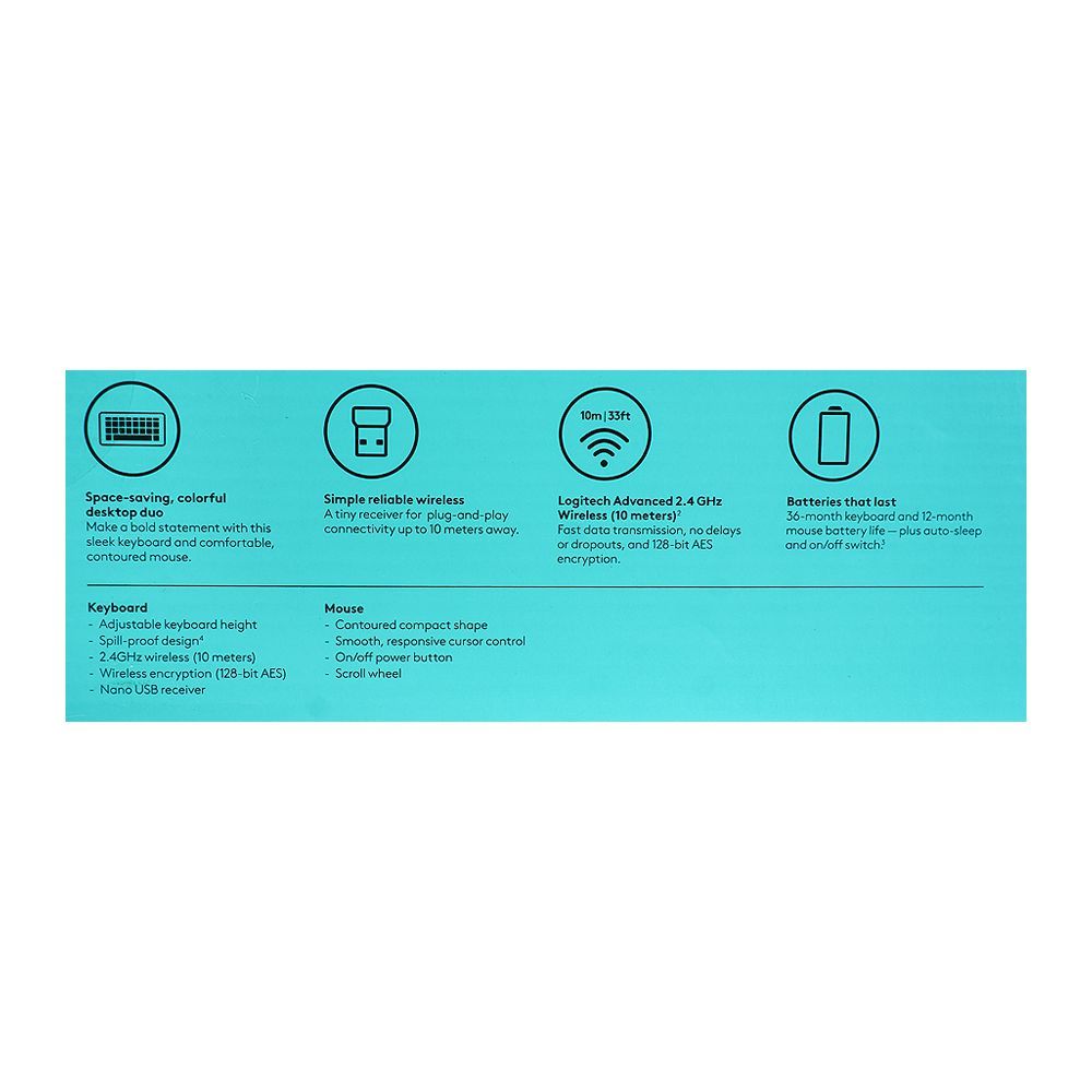 Logitech Nano Wireless Keyboard & Mouse Combo, 36M Keyboard & 12M Mouse Battery Life, Black & Yellow, MK-240, 920-008202