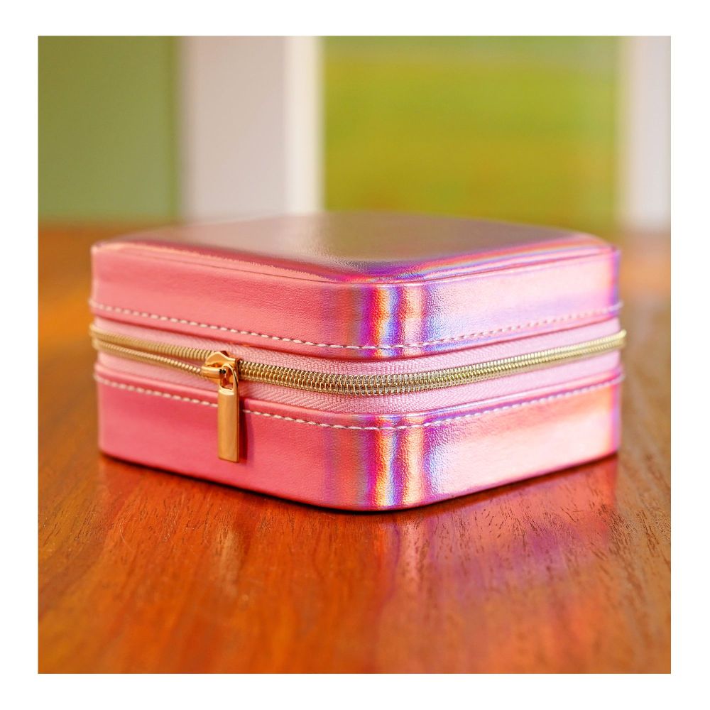 Mini Shiny Jewelry Storage Organizer Box For Rings, Earrings & Necklaces, Pink, BT-4