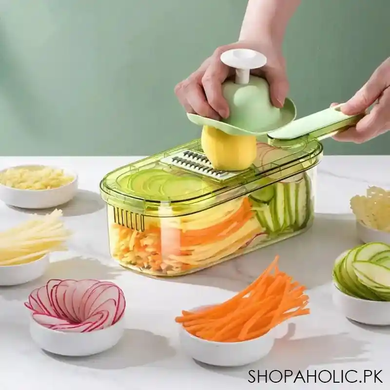 Multifunctional Vegetable Stinger, Vegetable Slicer Chopper Cutter Shredder with Storage Box, Vegetable Cutter With Basket, Hand Guard Potato Grater With Storage, Vegetable Chopper With Container, Transparent Slicer Shredder And Cutter