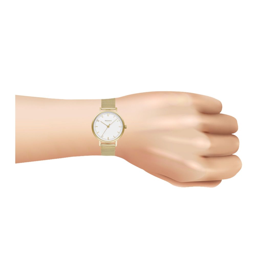 Obaku Women's White Background With Stainless Steel Mesh Bracelet Analog Watch, V248LXGIMG