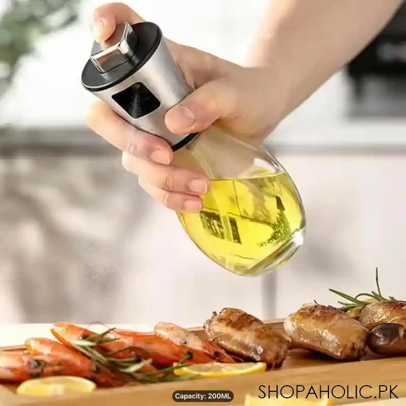 Oil Spray Pot, 200ml Cooking Oil Bottle, Stainless Steel Pump Oil Dispenser, BBQ Cookware Tool, Leak Proof Bottles with Non Slip Handle, Automatic Cap and Stopper for Kitchen Cooking