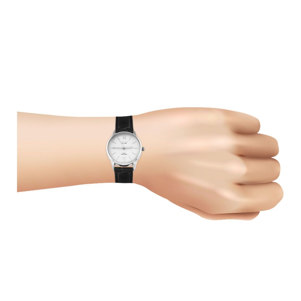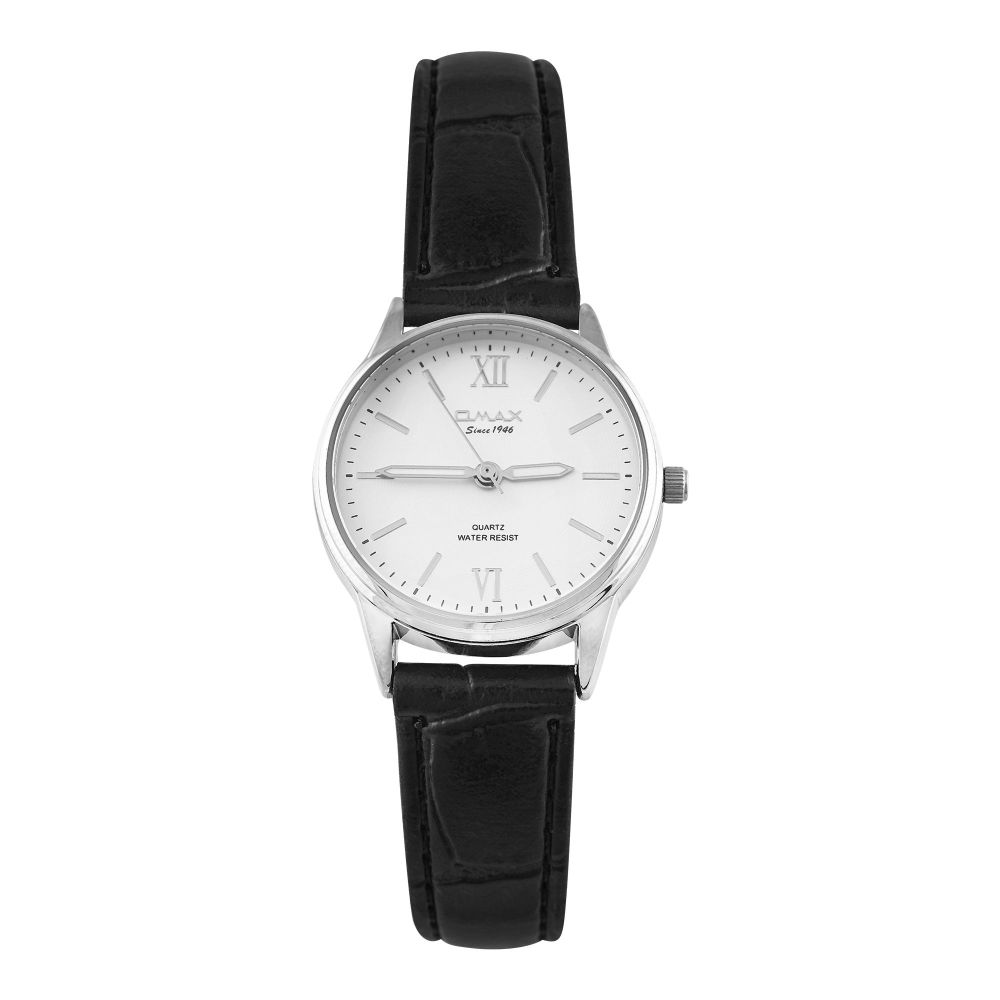Omax Women's Chrome Round Dial With Textured Black Strap Analog Watch, JXL03P62I