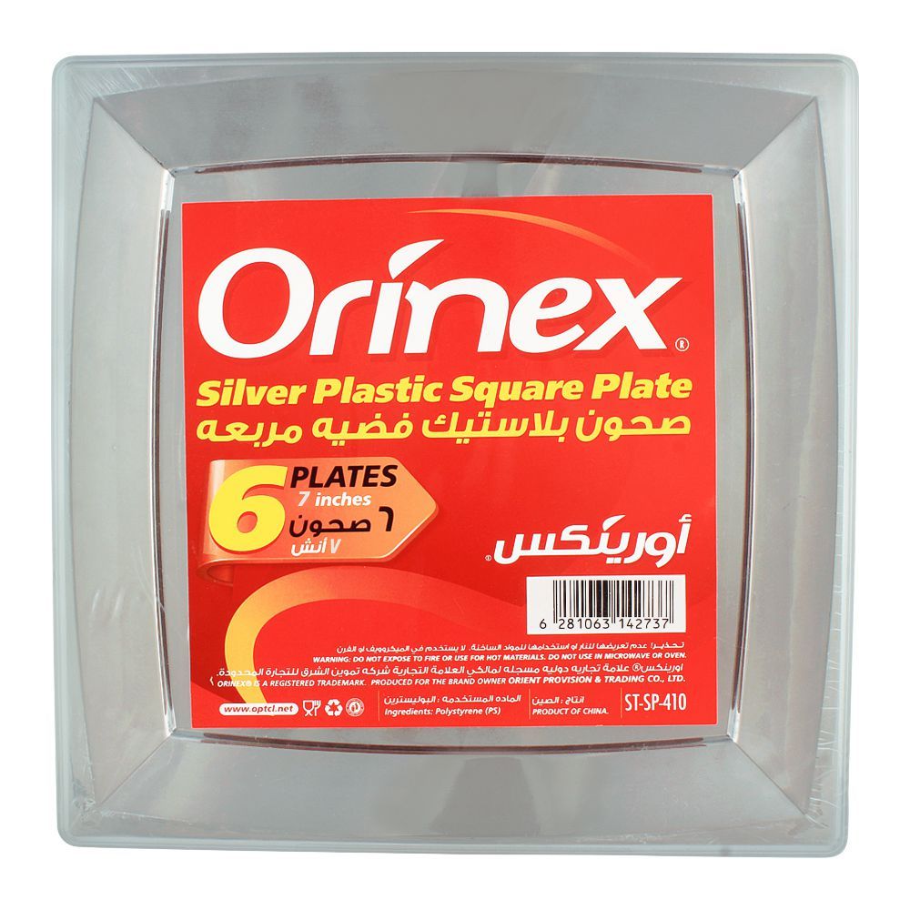 Orinex Silver Plastic Square Plate, 7 Inches, 6-Pack