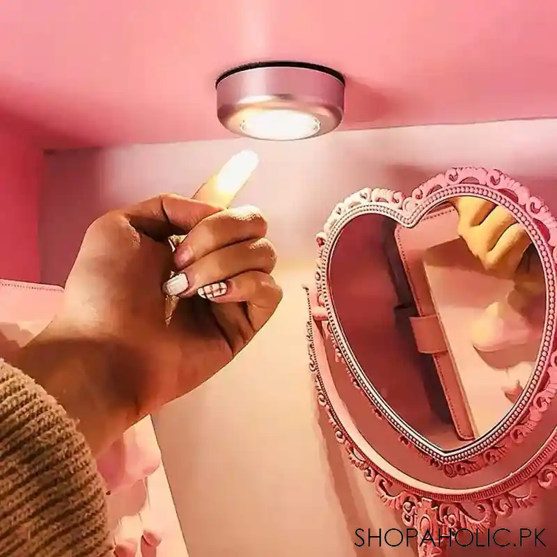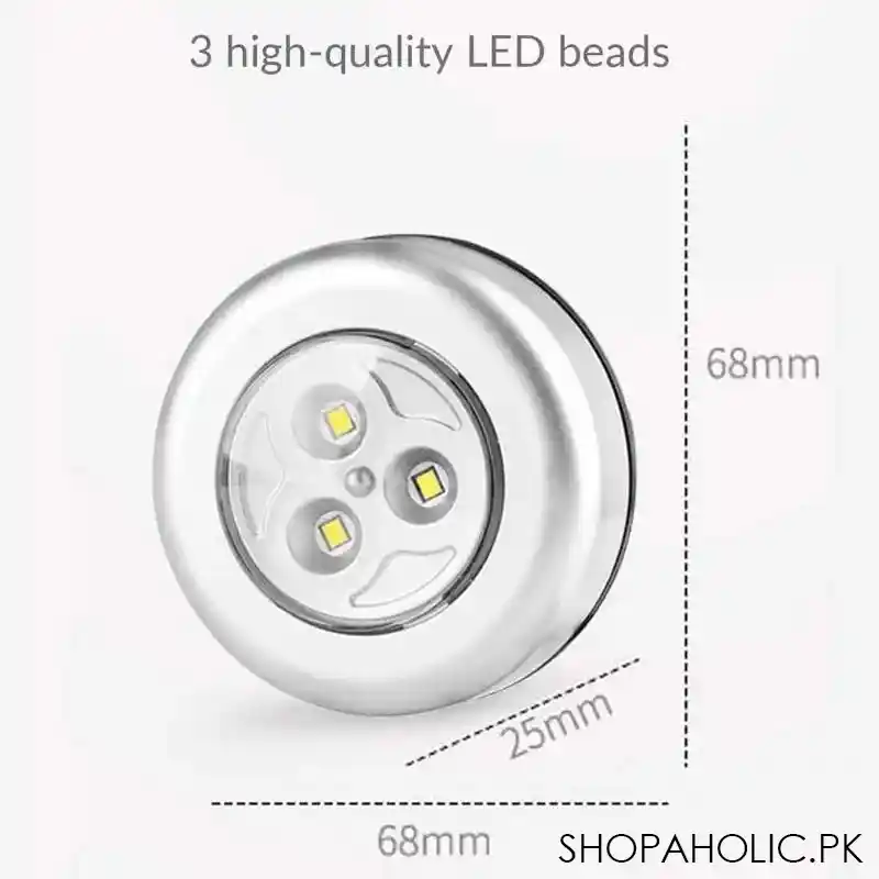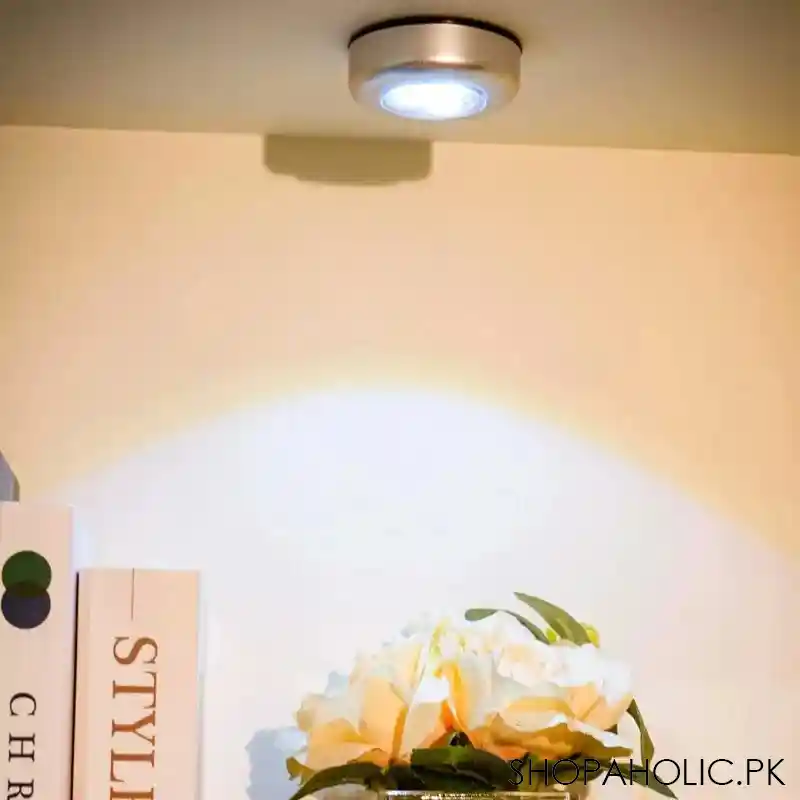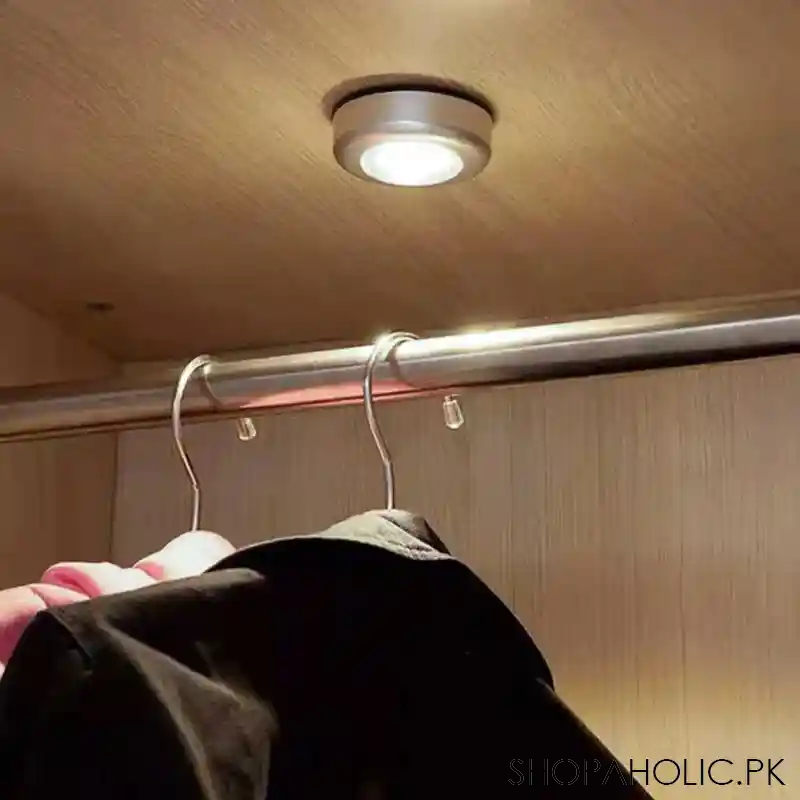 A pack of 3 LED tab Lights is a convenient lighting solution that can be used for a variety of purposes. These small and portable lights are typically powered by AAA batteries and feature energy-efficient LED white light. To turn the lights on, you simply press down on the center of the light, which activates the LED light. LED Lights are easy to use and can be attached to various surfaces using an adhesive. They are also versatile and can be used in a variety of settings, such as in closets, cabinets, or emergency lighting during power outages.