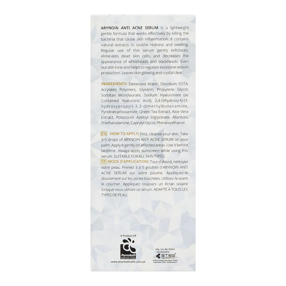 Pharma Health Arynoin Serum, Anti Acne Serum, For All Skin Types, 4 In 1 Formula, 20ml