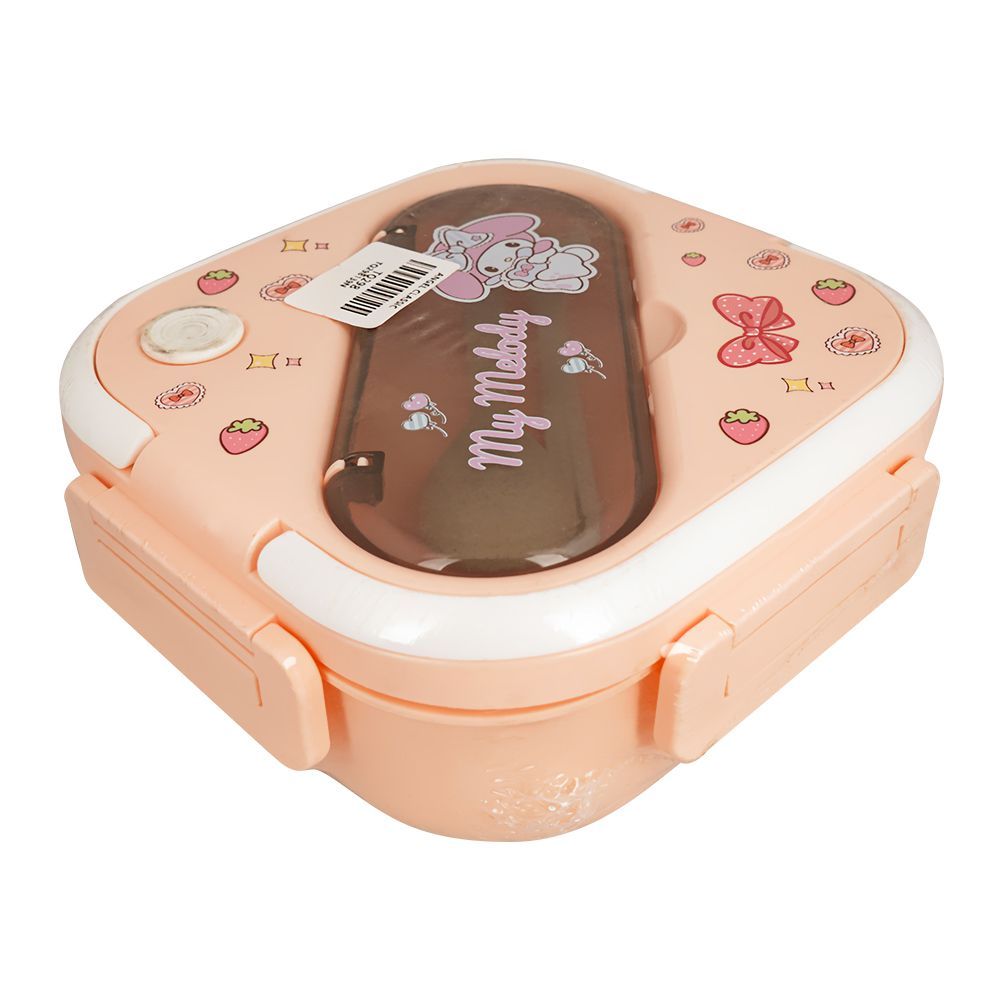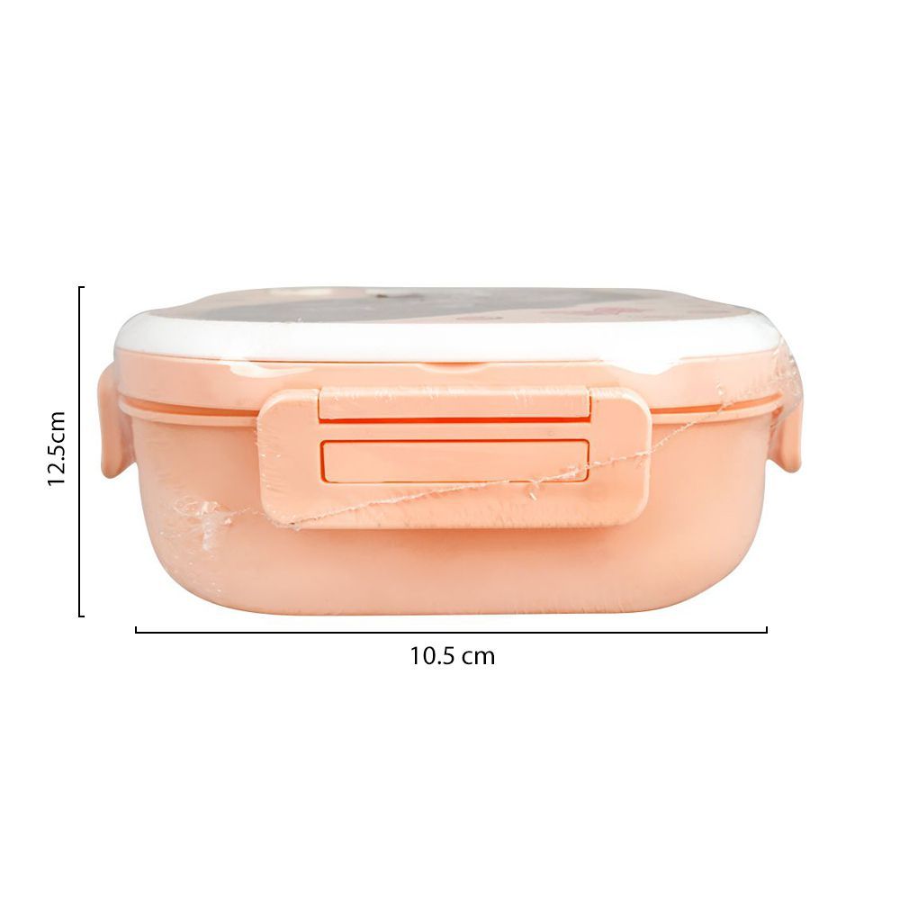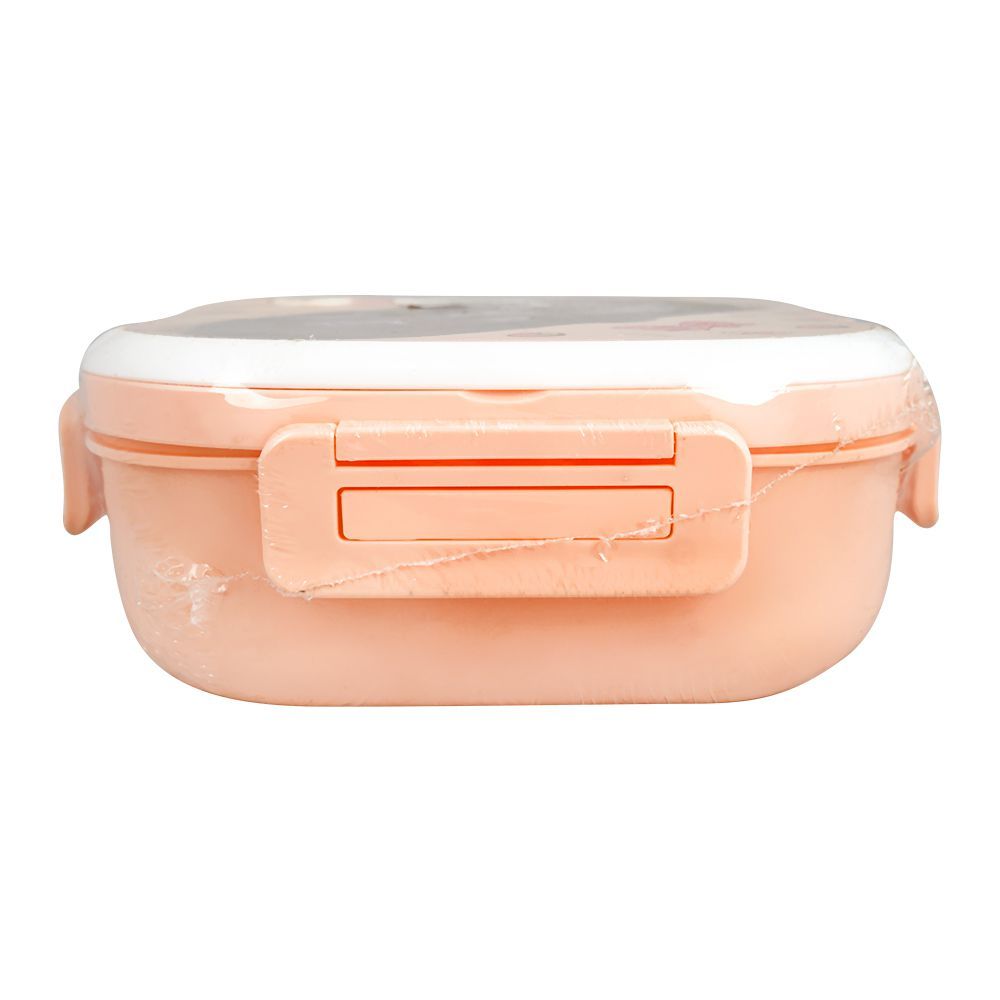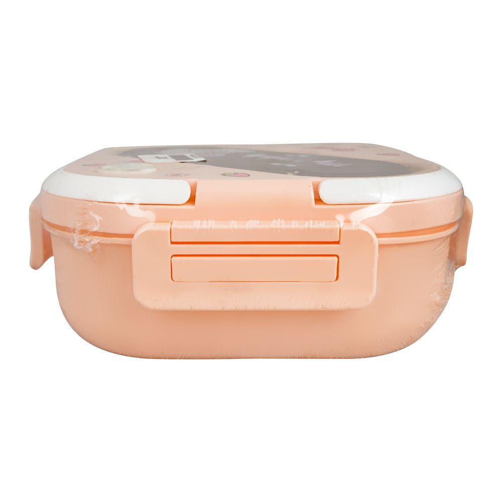 Plastic Lunch Box, 3 Compartments, Own Handle & Cutlery, 1300ml, Pink, 4.9in (H) x 4.1in (W) x 2.2in (D), Tq298