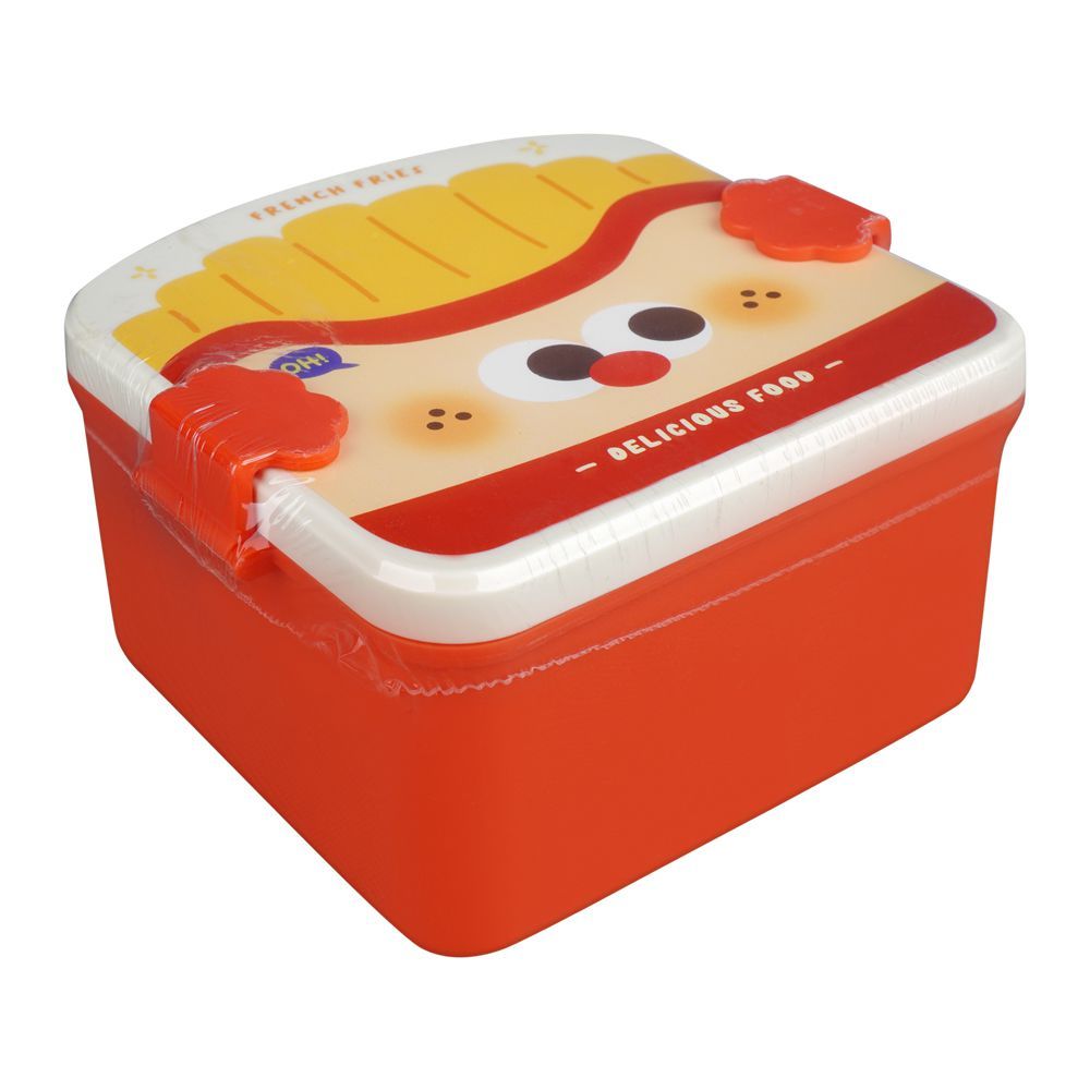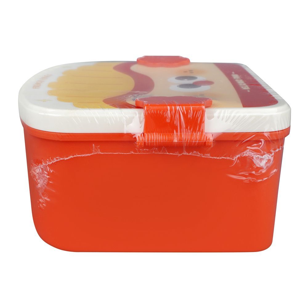 Plastic Lunch Box, 3 Compartments, Spoon & Fork, 1200ml, Red, 5.5in (H) x 5.1in (W) x 2.6in (D), 6824