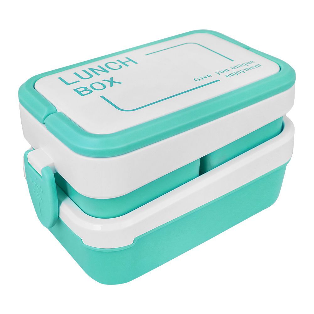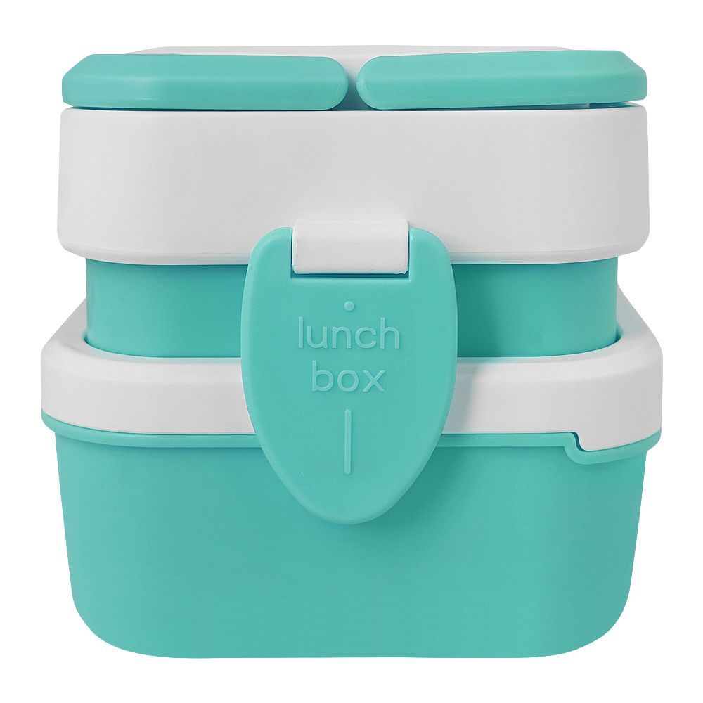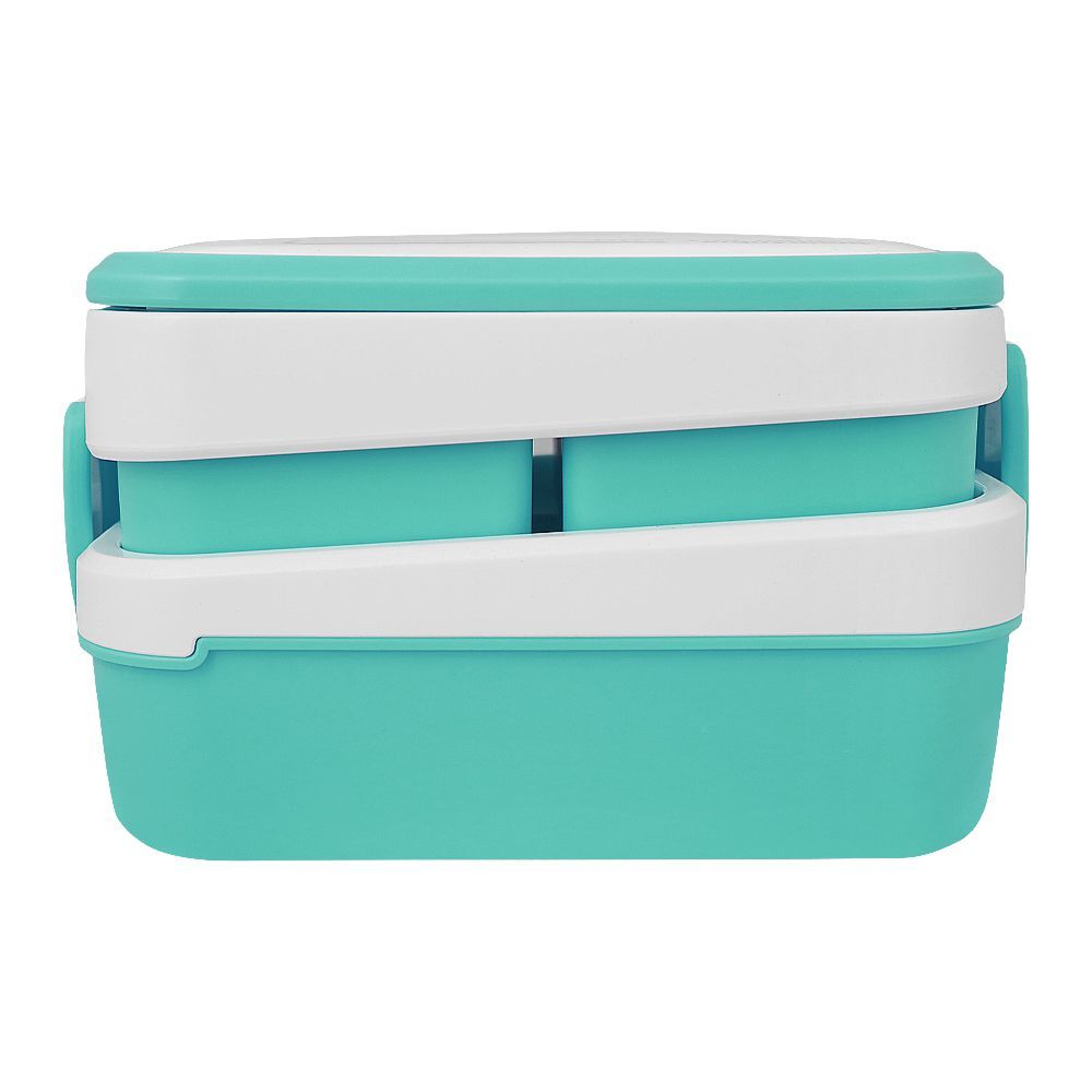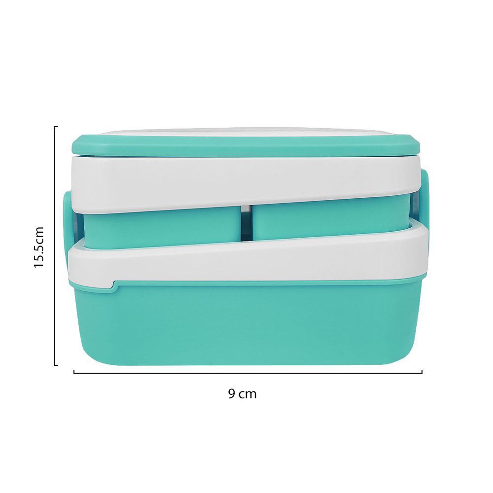 Plastic Lunch Box With 3 Rooms On 2 Levels With Own Handle, 1500ml, Sea Green, 6.1in (H) x 3.5in (W) x 2in (D), K-812