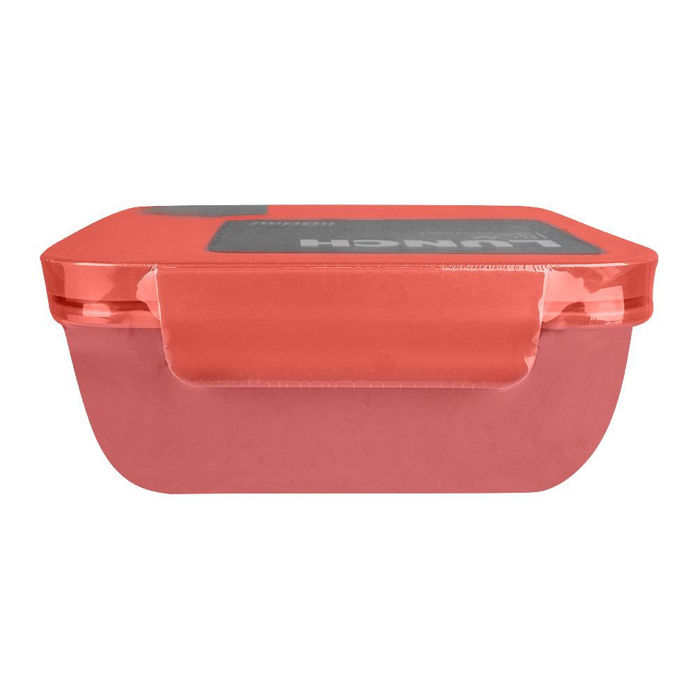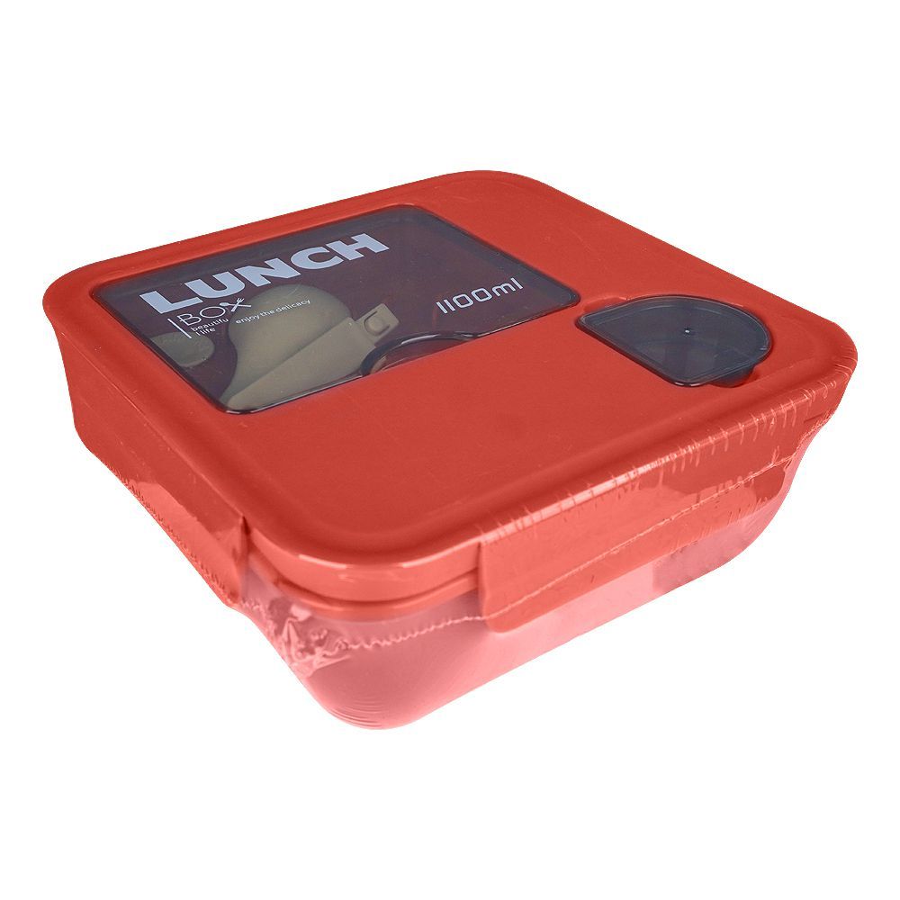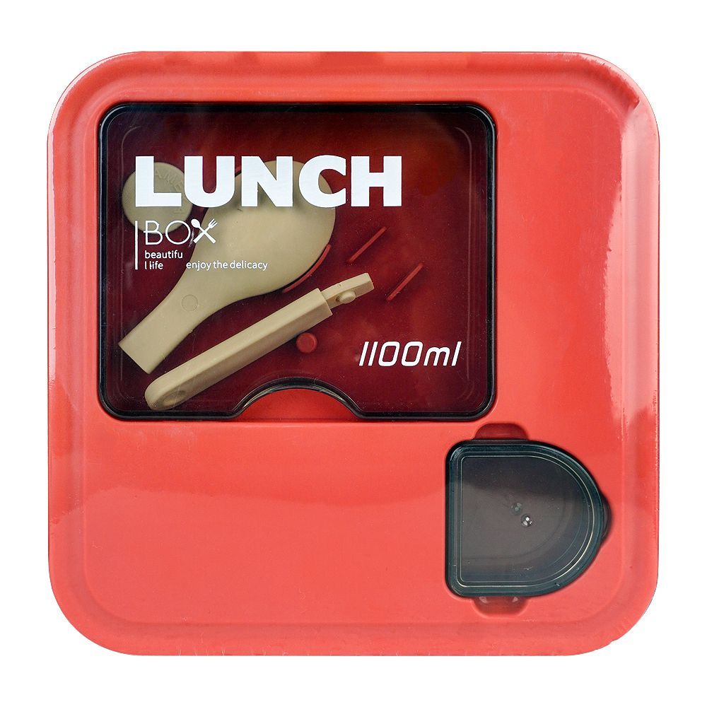 Plastic Lunch Box With Spoon, 1100ml Capacity, Red, 5.1in (H) x 5.1in (W) x 2in (D), 53002