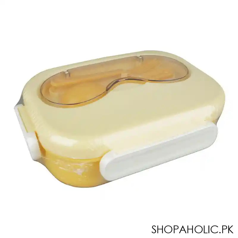 Plastic Snap Lock Lunch Box, 3 Compartments, Spoon & Fork, 1200ml, Yellow, 25451