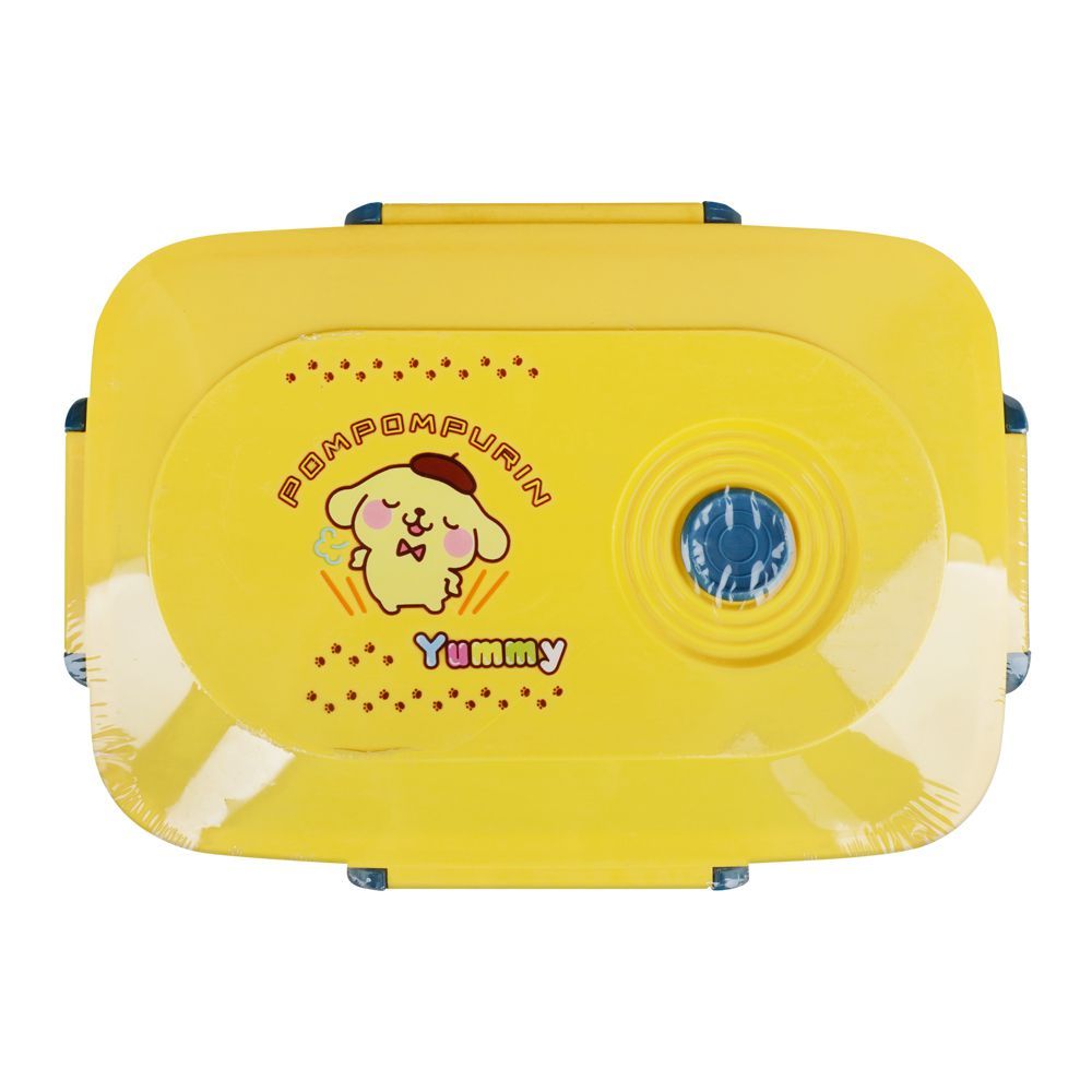Pompompurin Plastic Lunch Box, 3 Compartments, Spoon & Fork, 1100ml, Yellow, 7.3in (H) x 45.3in (W) x 2.2in (D), Tq-158