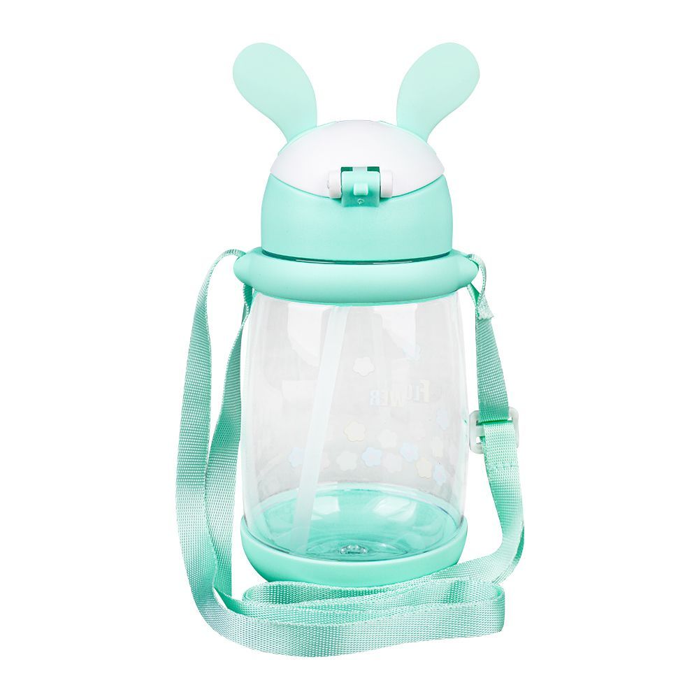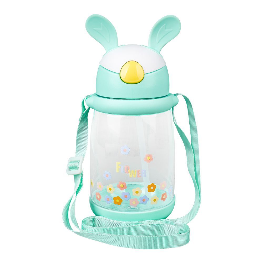 Rabbit & Floral Plastic Water Bottle With Strap, 600ml Capacity, Blue, LY-271
