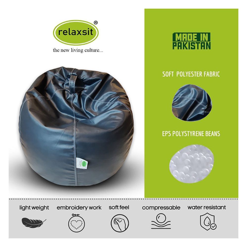 Relaxsit Puffy Leather Bean Bag, Blue, 43.31" x 31.5"
