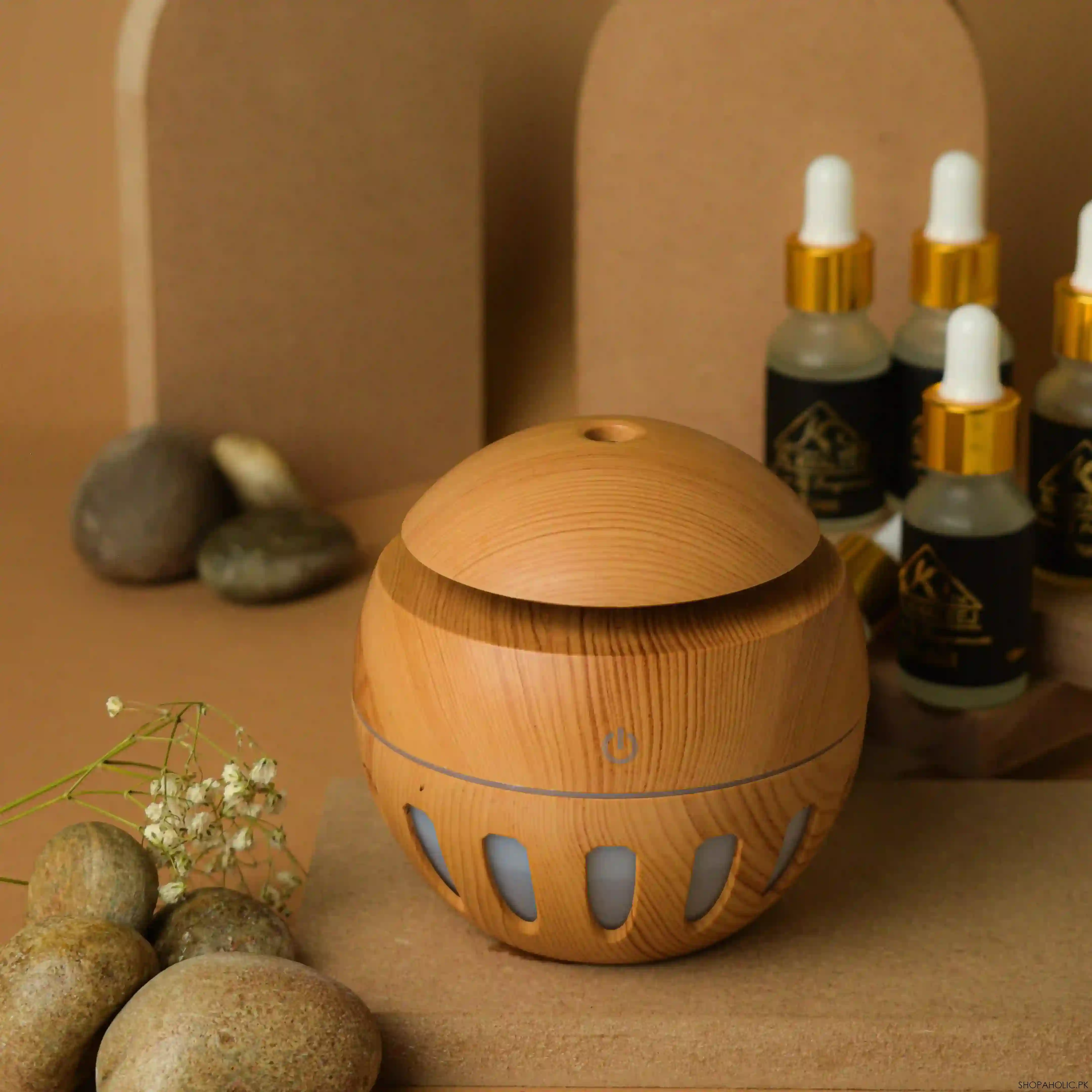 Round Wooden Humidifier, Color Changing Aroma Diffuser, Household Aromatherapy for Home Office, Aroma Oil Diffuser Cool Mist Maker