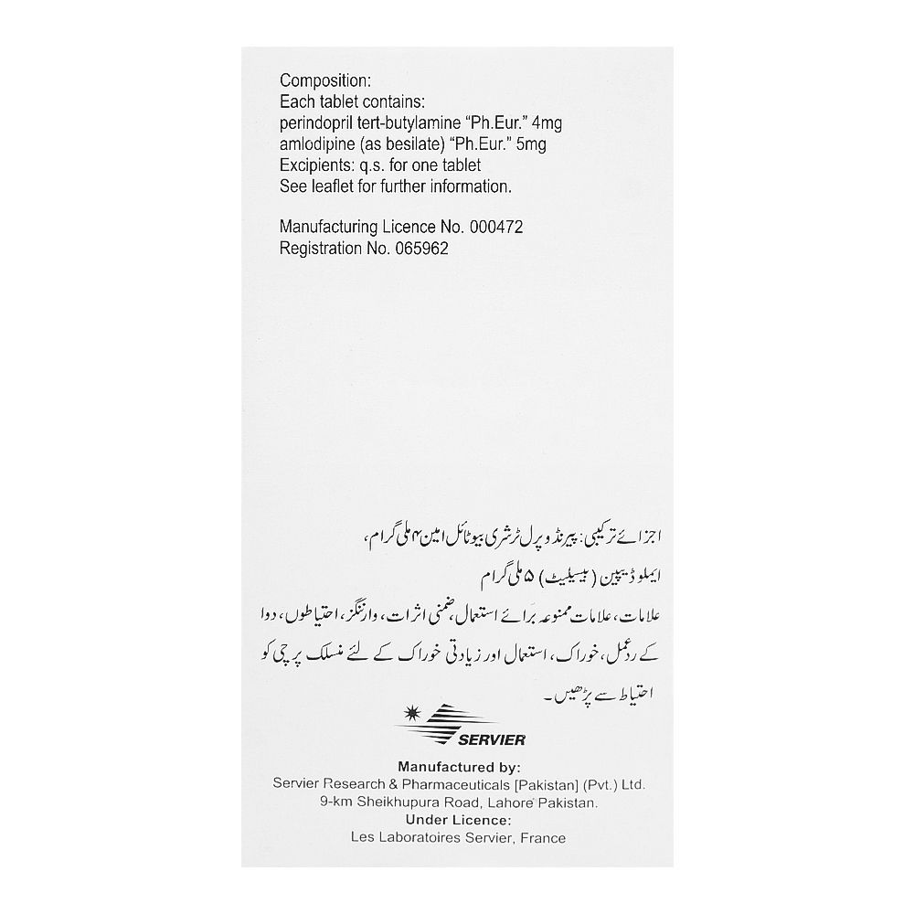 Servier Pharmaceuticals Coversam Tablet, 4mg/5mg, 10-Pack