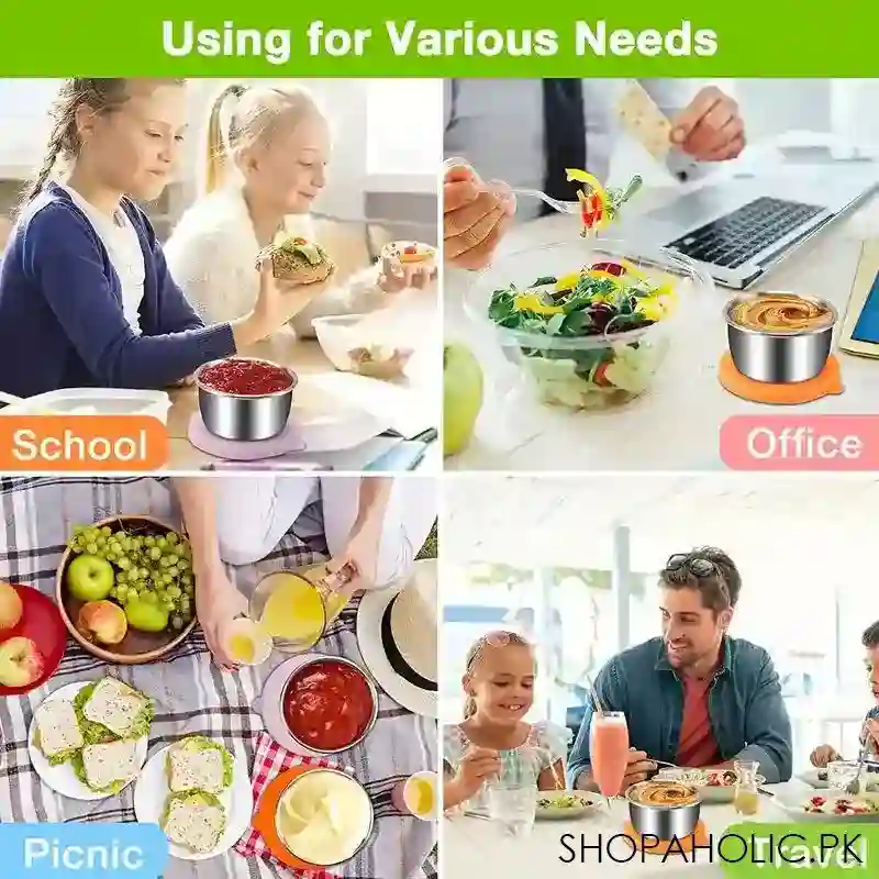 Set Of 3 Colorful Lid Steel Bowl, Bento box Sauce Container with Lid, 304 Stainless Steel Salad Dressing Container, Stackable Food Storage Box Bowl With Lids