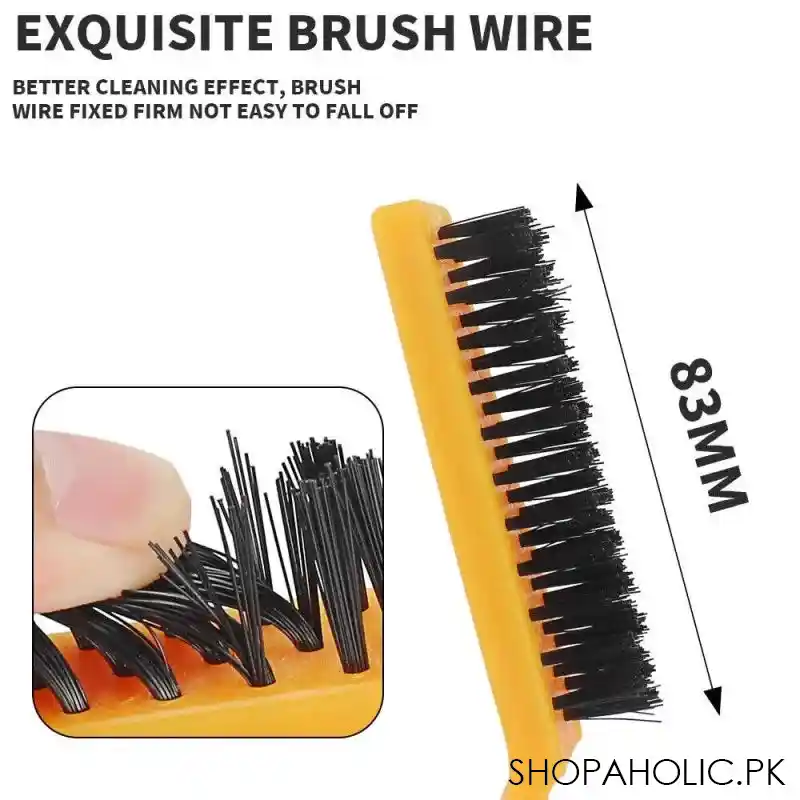 The nylon and wire brushes are also included in the set, providing a gentle yet effective cleaning solution for plastic surfaces and general cleaning tasks. The nylon bristles are soft and flexible, making them ideal for cleaning delicate surfaces such as computer keyboards and screens, and for removing dirt and grime from household items such as shoes and bags. The wire brush, on the other hand, is tougher and more durable, making it ideal for removing rust and cleaning tough stains on a variety of surfaces.