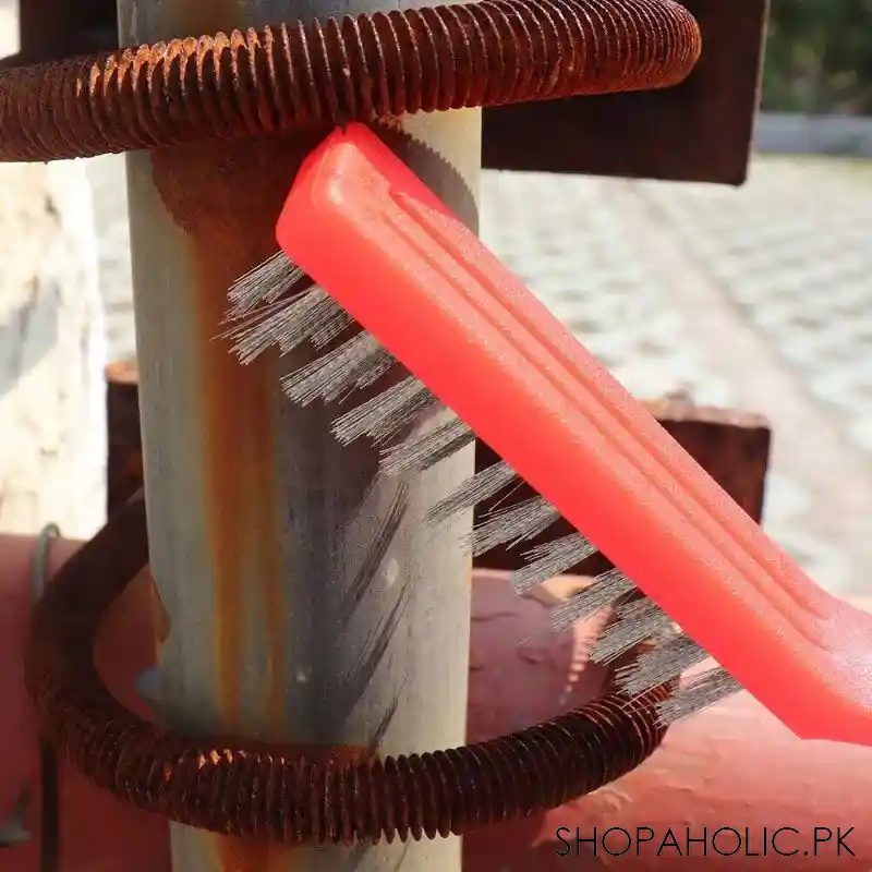 The stainless steel brush is a hard and durable tool that's perfect for removing stubborn rust and other tough stains. Its bristles are strong enough to tackle grime and rust on metal surfaces that require aggressive cleanings, such as automotive parts, garden tools, and outdoor furniture. The brush is also ideal for heavy-duty cleaning tasks around the house, garage, and workshop.