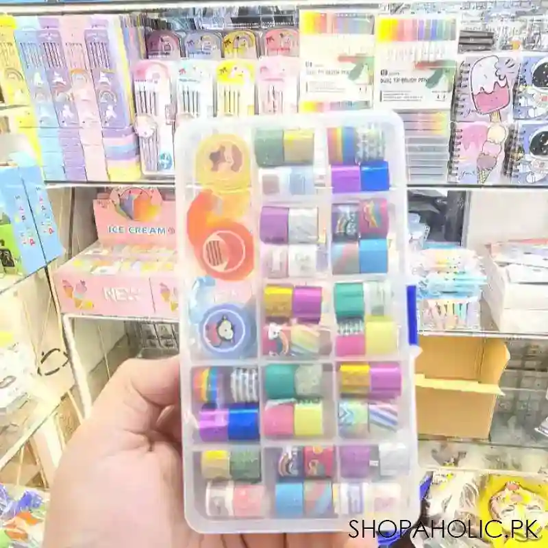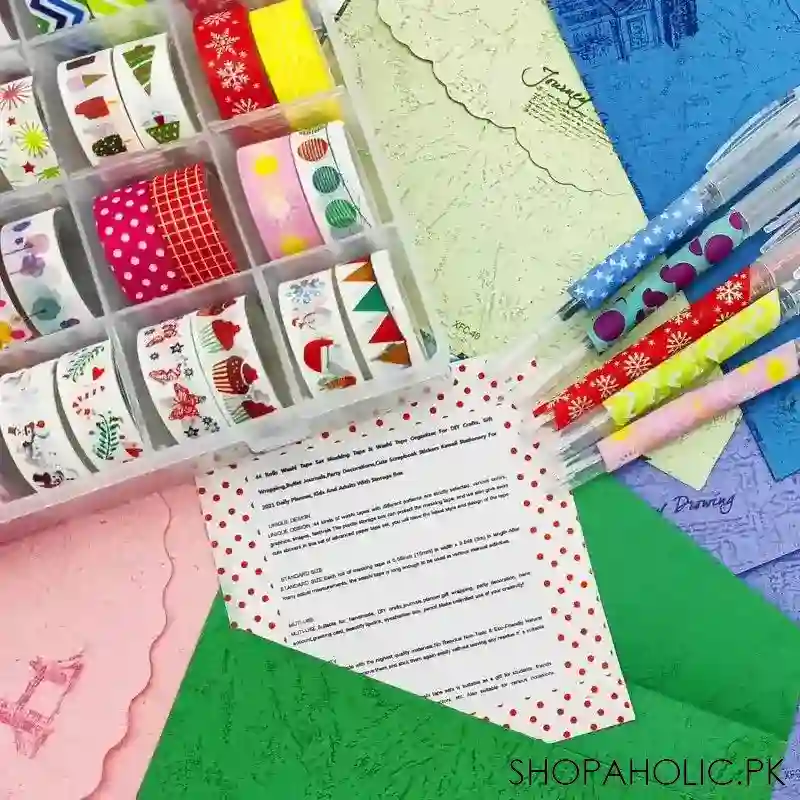 Set of 51 Decorative Tape, Art Washi Tape Storage Box, Multi Design Sticky Paper Decorative Tape, Masking Tape Organizer, Aesthetic for DIY Crafts, Gift Wrapping Tape, Decorative Tapes with Storage Box