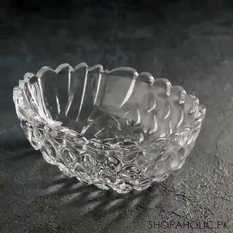 The Noritazeh Ananas Shaped Glass Bowl is a set of six glass bowls shaped like pineapples, each bowl measuring 12 x 9 cm. The bowls are handcrafted from high-quality, lead-free glass and feature intricate detailing, making them both beautiful and practical. They are dishwasher safe and can be used for serving food or as decorative pieces around the home. Overall, they are a charming addition to any table setting or home decor.
