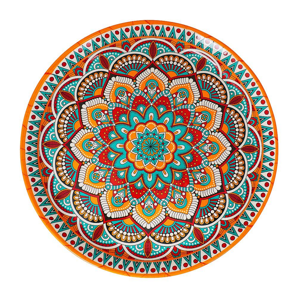 Sky Melamine Thal, Medium, Ajrak Print, Cultural Design, Serving Plate