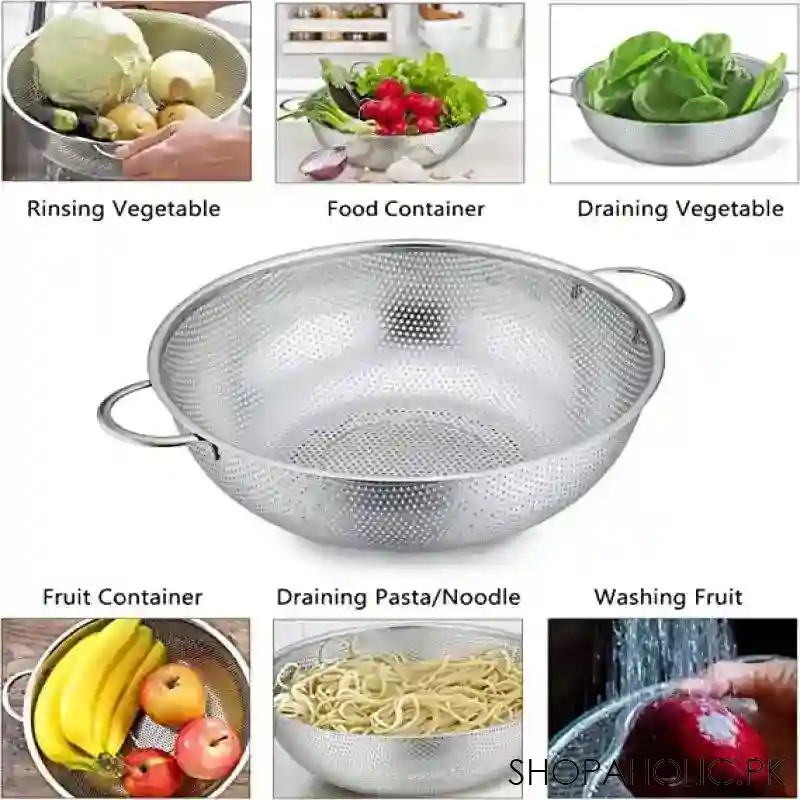 Stainless Steel Kitchen Fruit Vegetable Washing Basket, Steel Washing Filter Strainer, Micro Perforated Colander Draining, Handheld Spider Strainer