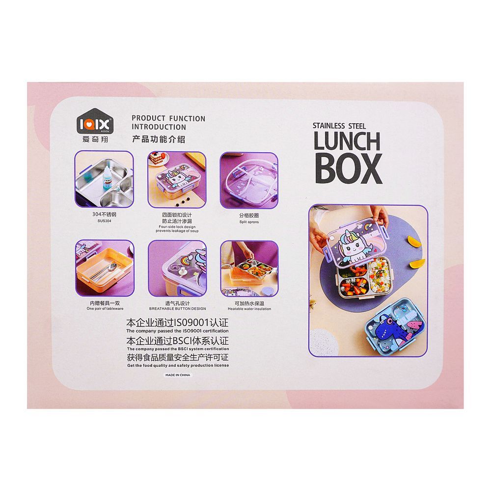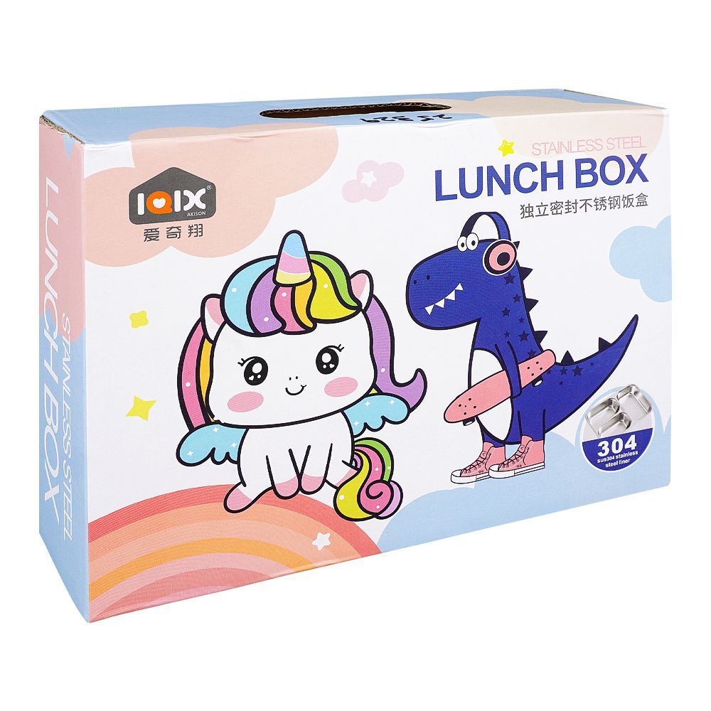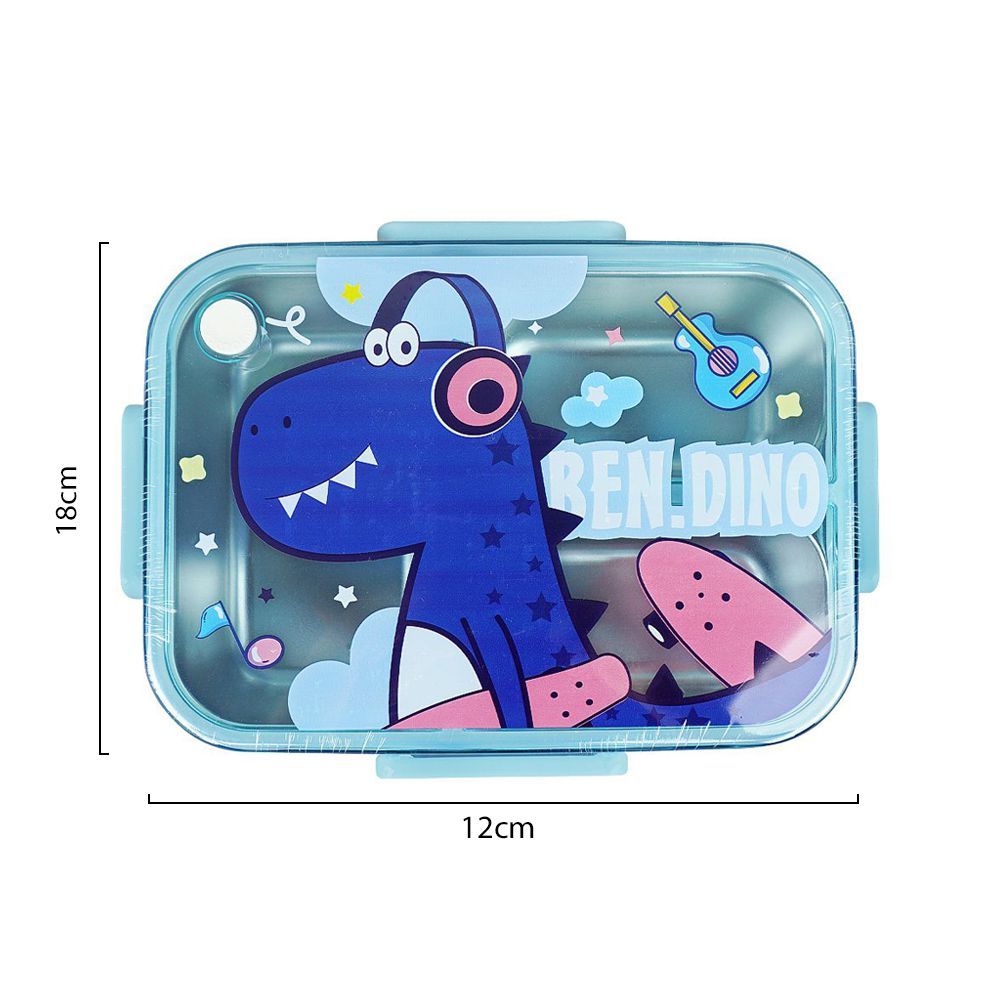Stainless Steel Lunch Box, Spoon & Chop Stick, Blue, 7.1in (H) x 4.7in (W) x 2.1in (D), 25329