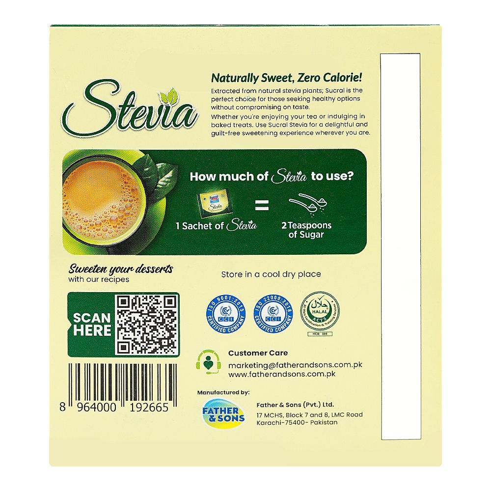 Sucral Stevia Sachets Box, 50-Pack