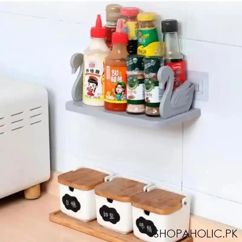 Swan Floating Shelf, Kitchen And Bathroom Storage Shelf, Multifunctional Storage Rack, Household Kitchen Bathroom Organizer Shelf, Wall Hanging Seasoning Storage Shelf, Wall Mounted Storage Organizer, Multipurpose Floating Shelf