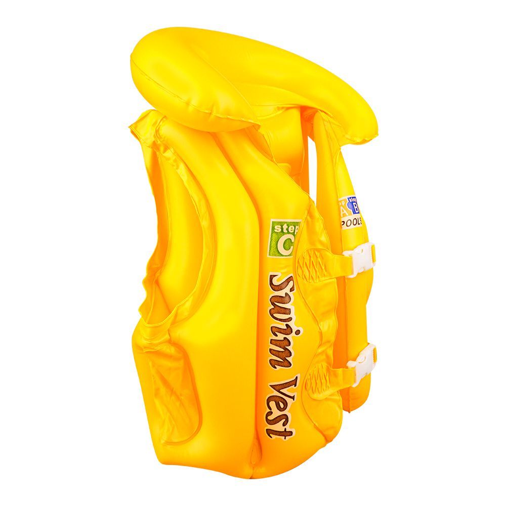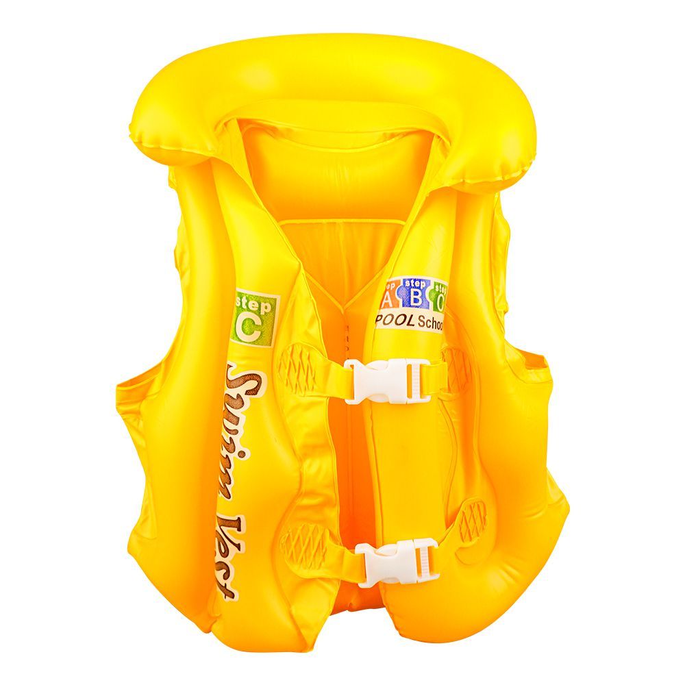 Swimming Inflatable Lifejacket With Head Protection, Swimming Vest For Kids, Yellow