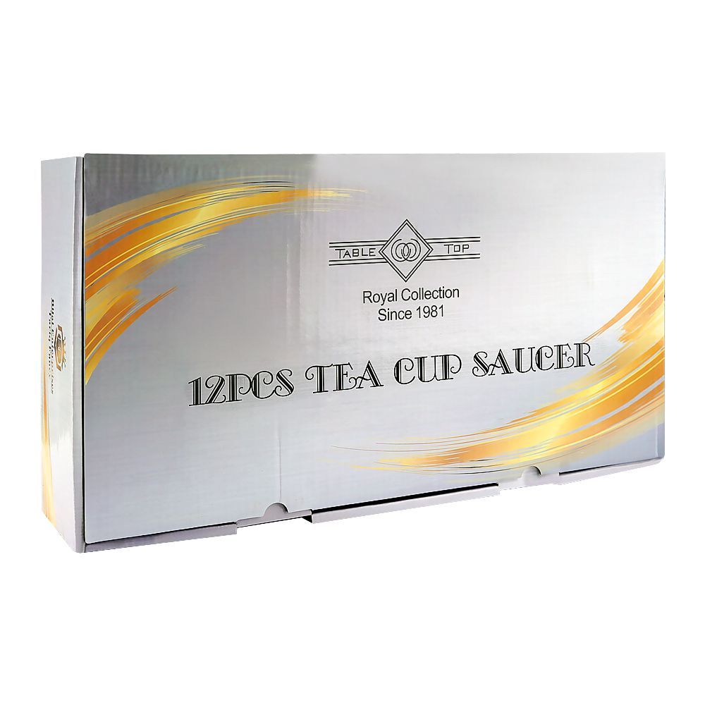 Table Top Tea Cup & Saucer Set, 12-Piece, Thick Gold Design