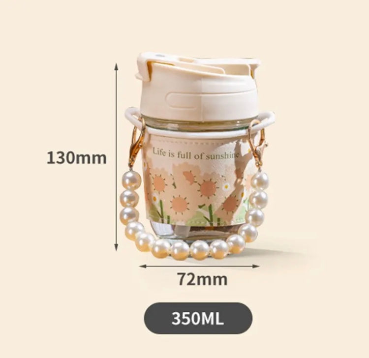 Thermal Mini Coffee And Water Bottle, Portable Glass Straw Cup, Dual Drinking Pearl Bracelet Cup