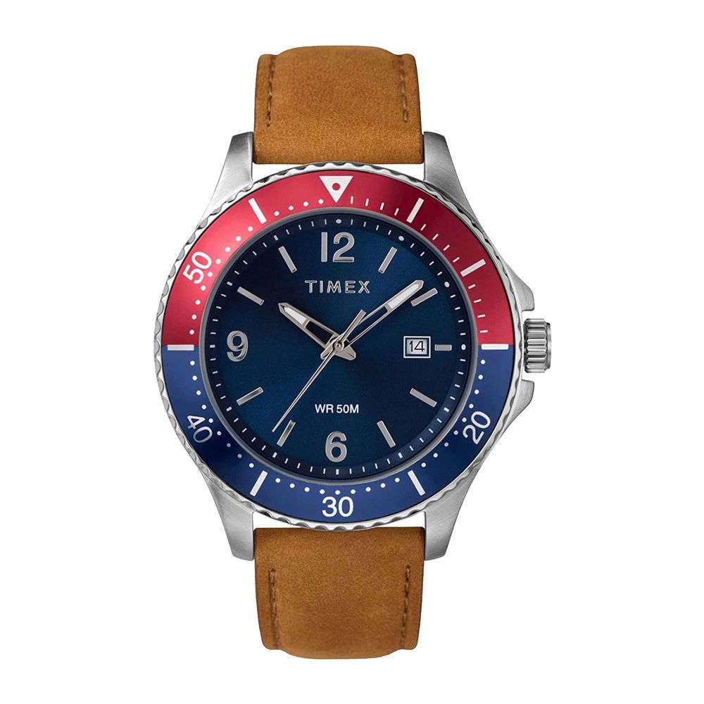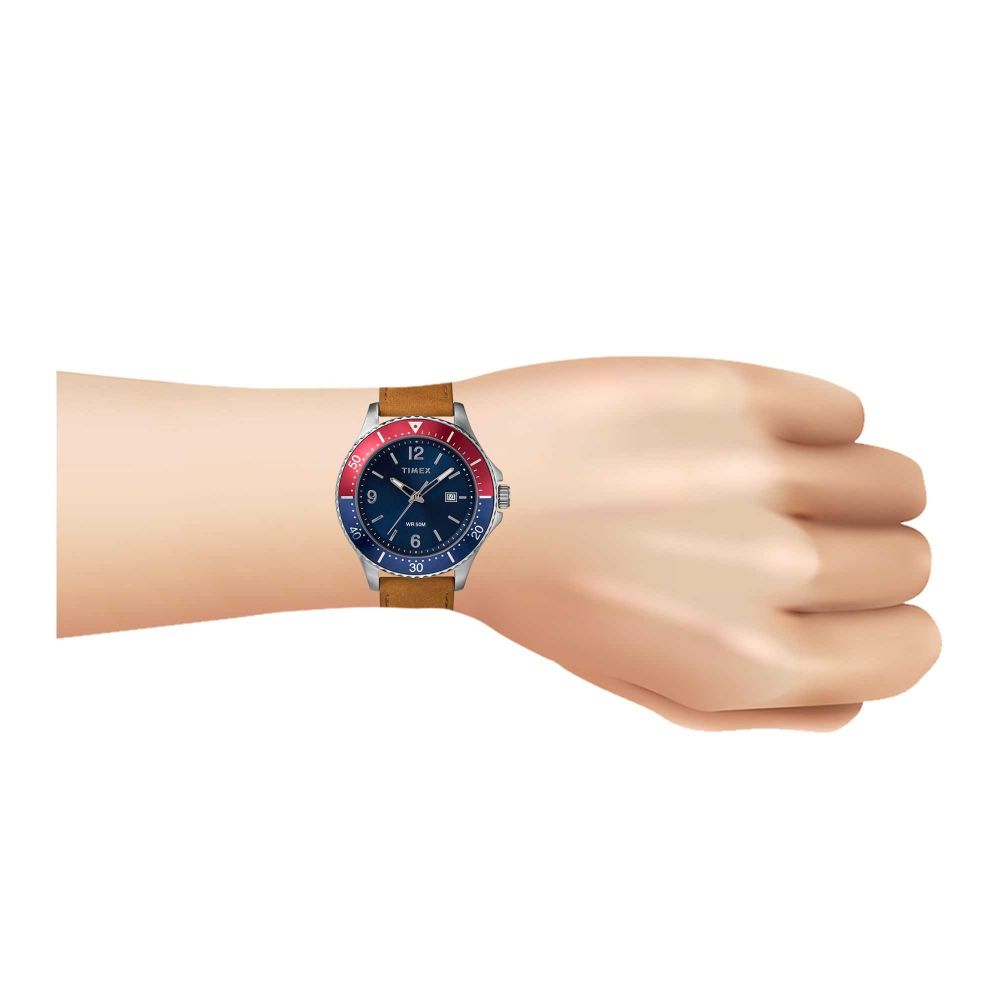 Timex Men's WR50M Red & Blue Round Dial With Plain Brown Strap Analog Watch, TW2U29200