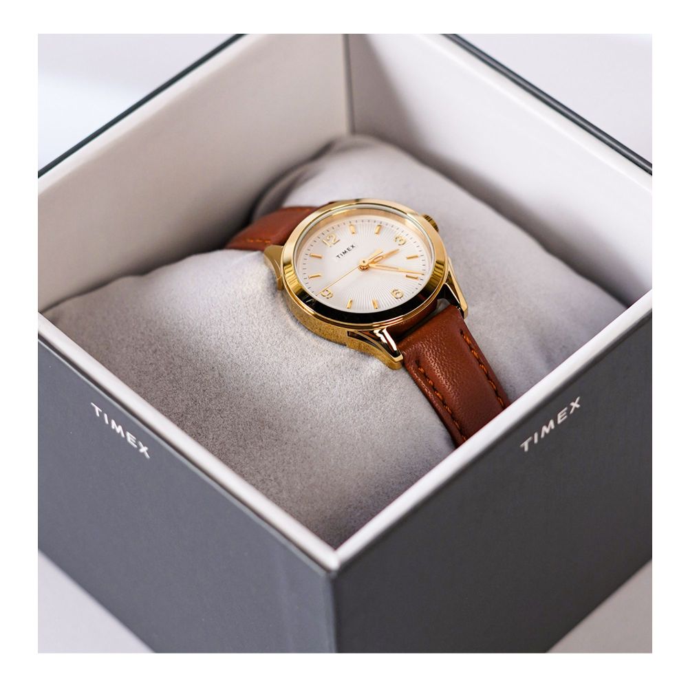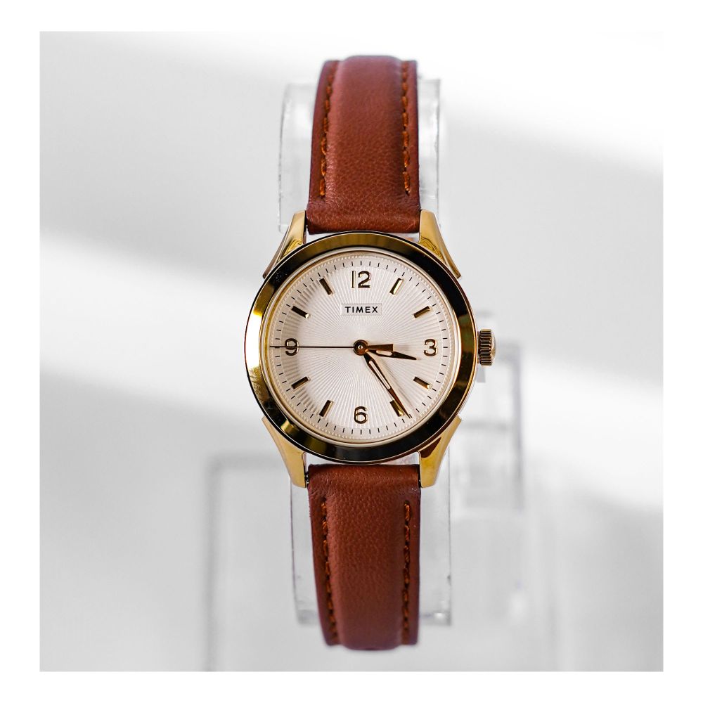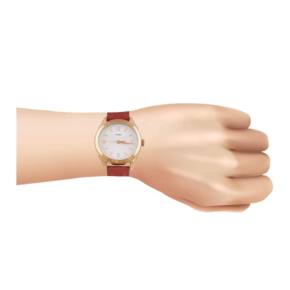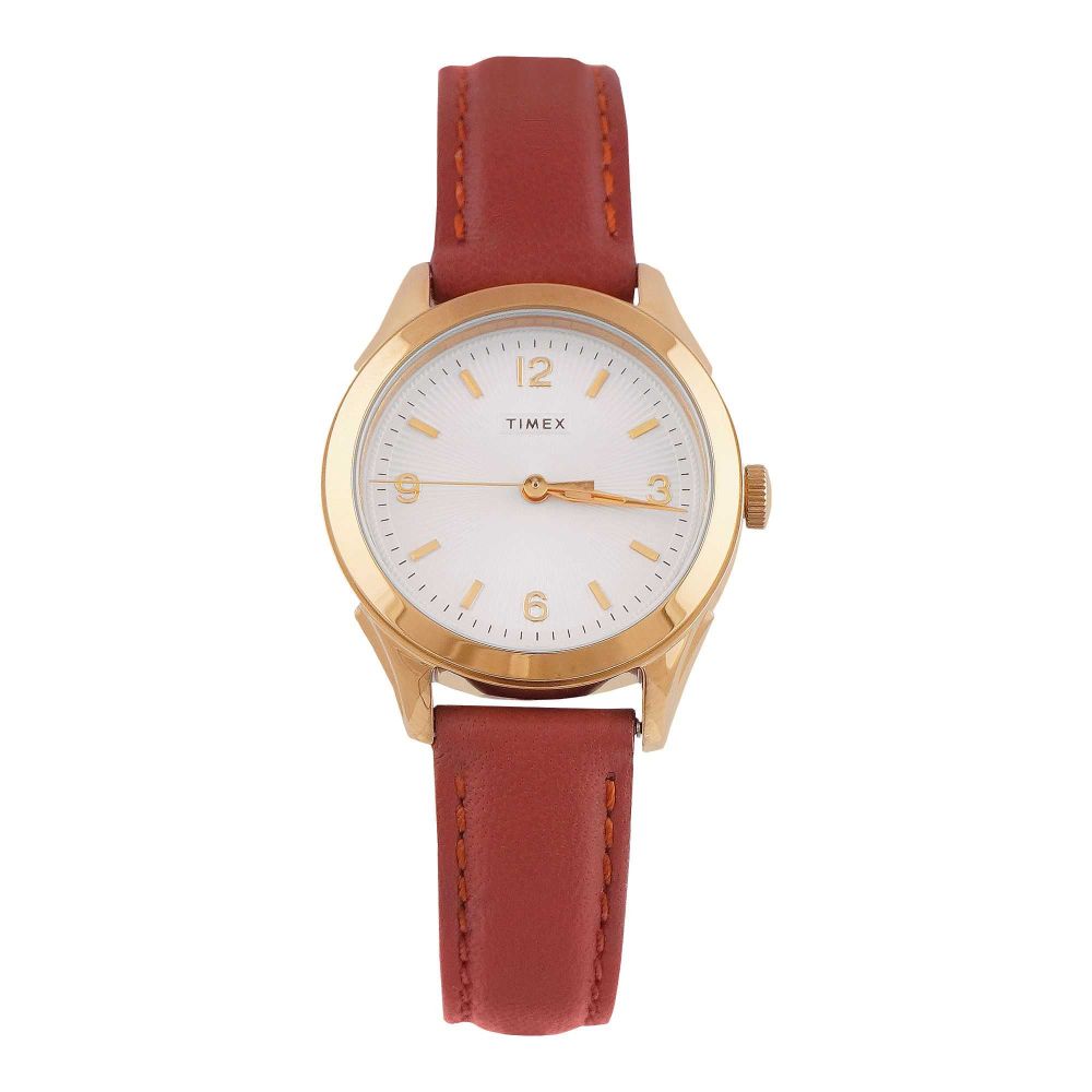 Timex Women's Golden Round Dial With Plain Red Strap Analog Watch, TW2R91100