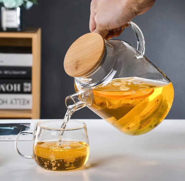 Transparent Glass Teapot With Bamboo Lid