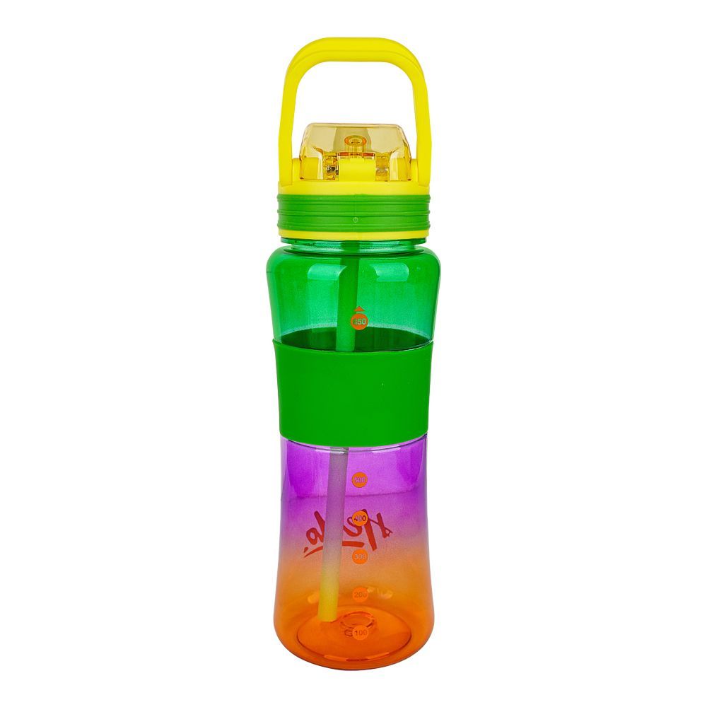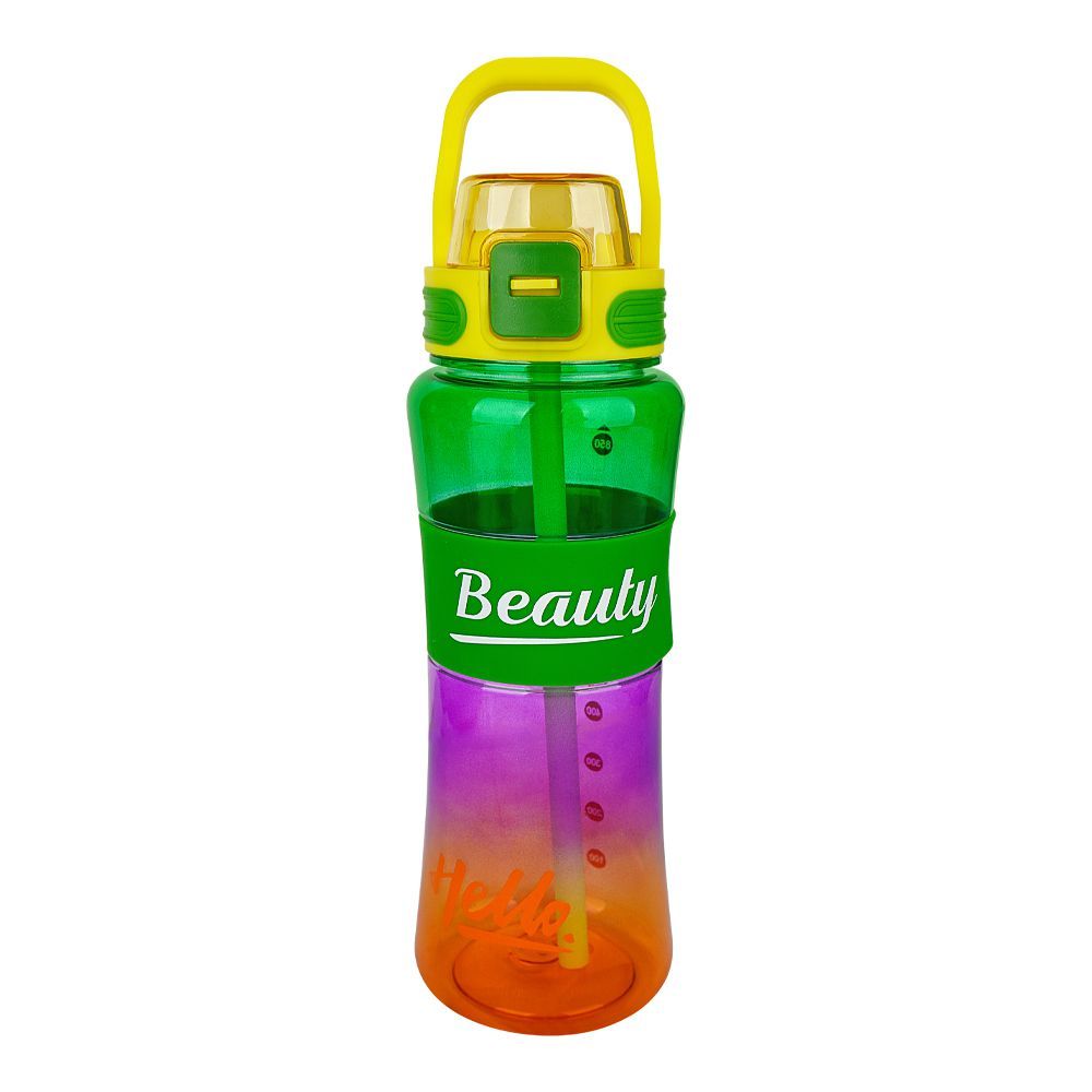 Trendy Hello Beauty Plastic Water Bottle With Straw & Easy to Carry Handle, One Click Open, 7.7in (H) x 2.8in (W), Green