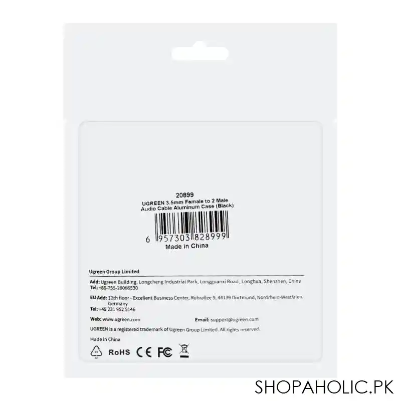 UGreen 3.5MM Female To 2 Male Audio Cable, Aluminium Case, Black, 20899