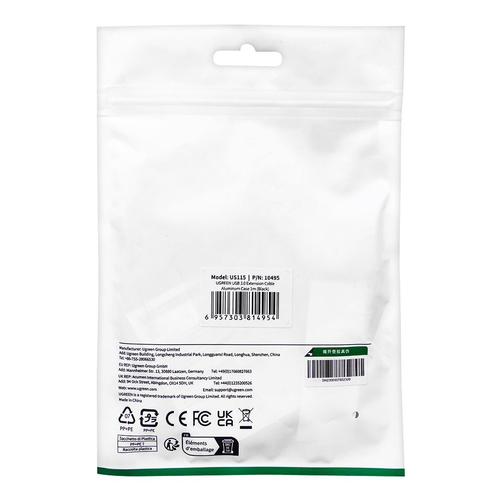 UGreen USB 3.0 Extension Braided Cable 1M, Black, 10495
