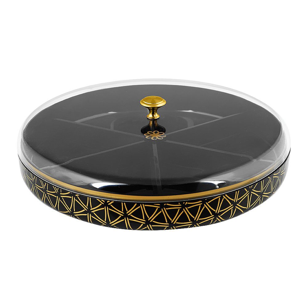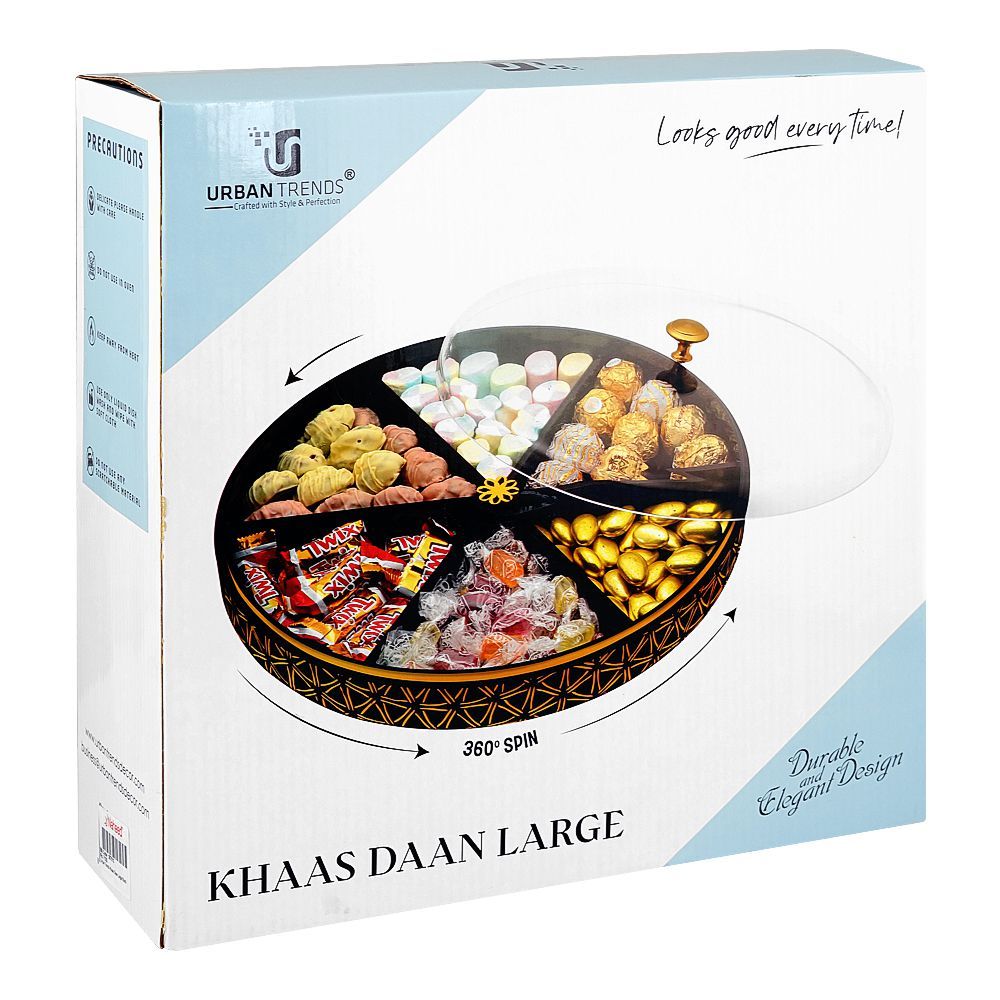 Urban Trends Khaas Daan Serving Tray with Lid, 6 Compartments, Large, Black