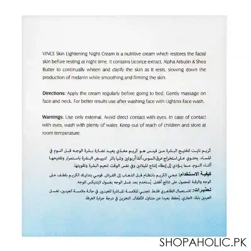 Vince Lightnix Skin Lightening Night Cream, All Skin Types, 50ml