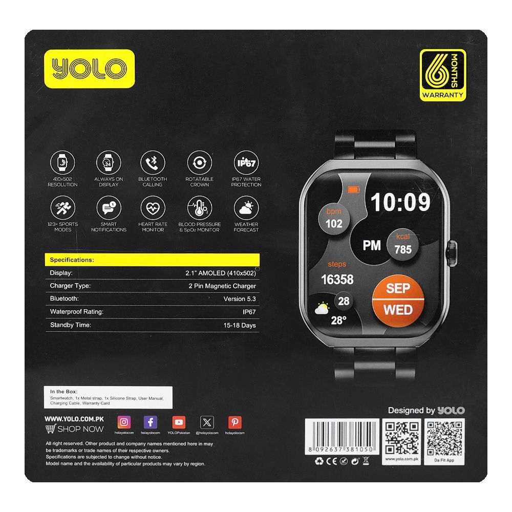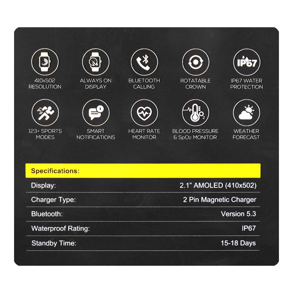 Yolo 2.1" Amoled Display Supreme+ Smart Watch, IP67 Water Resistance, Black
