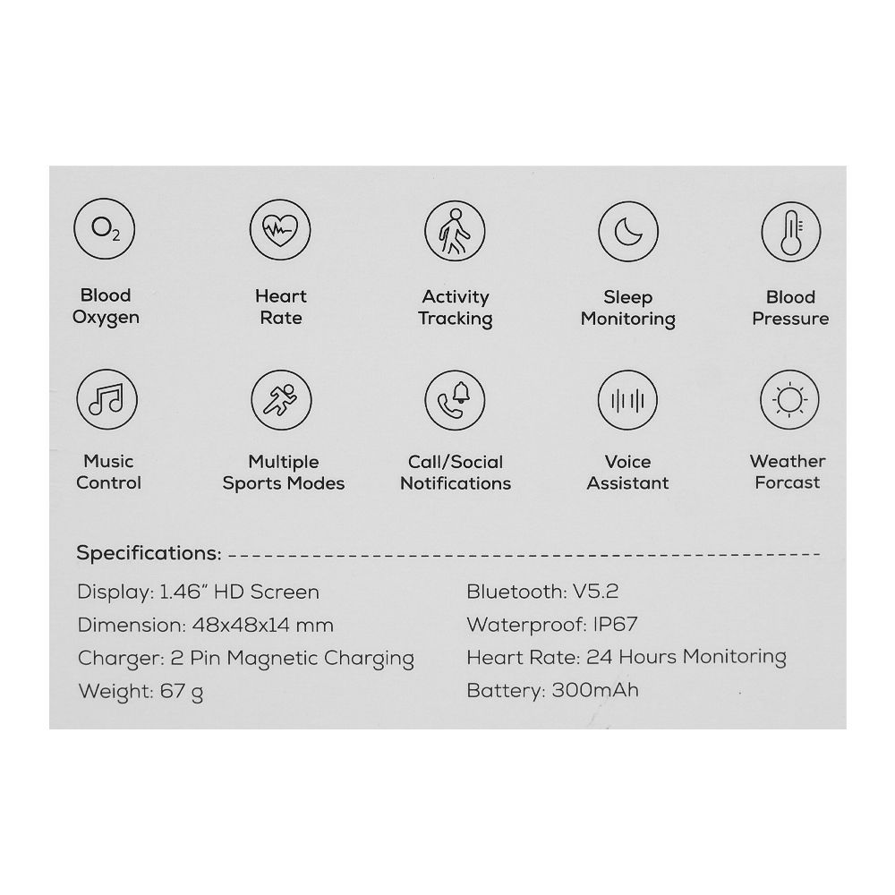 Yolo A.P 1.46" HD Screen Designer Smart Watch, Water Proof, 2 Pin Magnetic Charging, 300mAh Battery, Silver