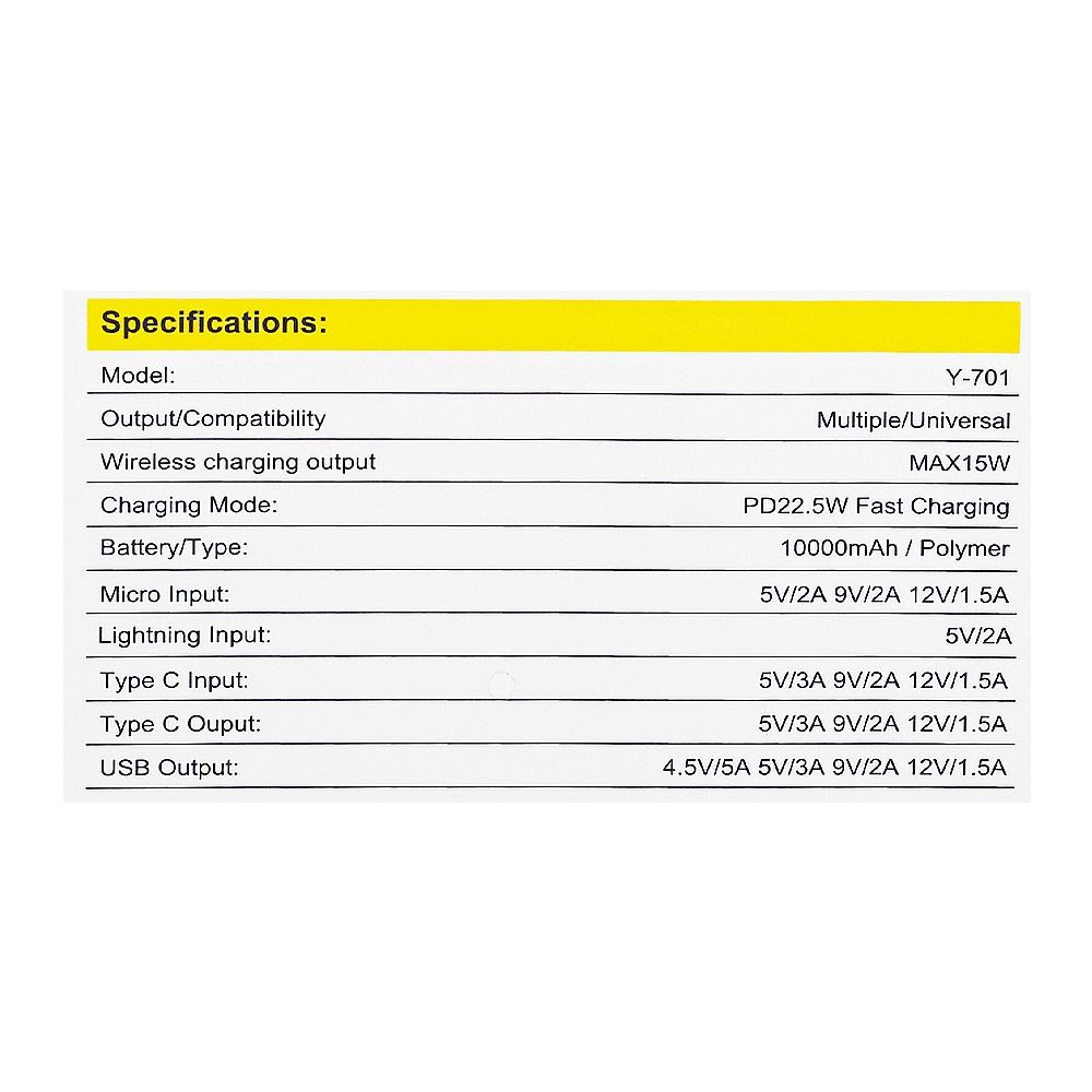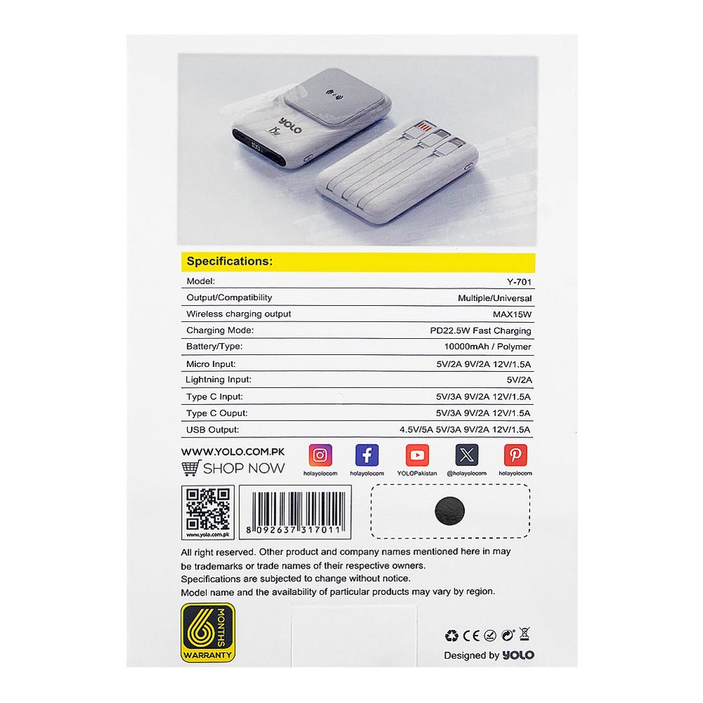 Yolo GoMag Pro Power Bank (10000mAh, 22.5W, Wireless Charging), Black, Y-701